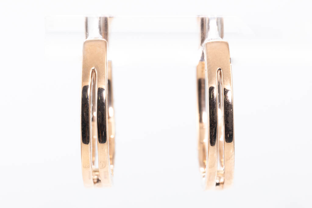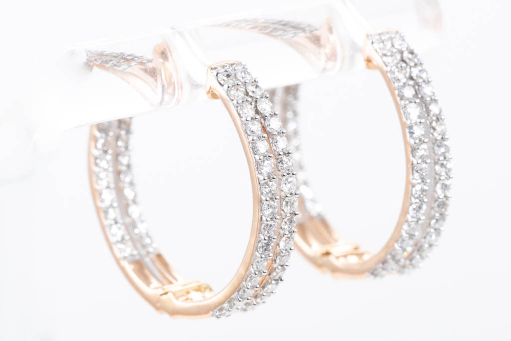 Diamond hoop earrings with round Diamonds totalling 0.91cts. (Estimated grading: H SI). 14ct rose gold. Weight: 5.4g. (New)