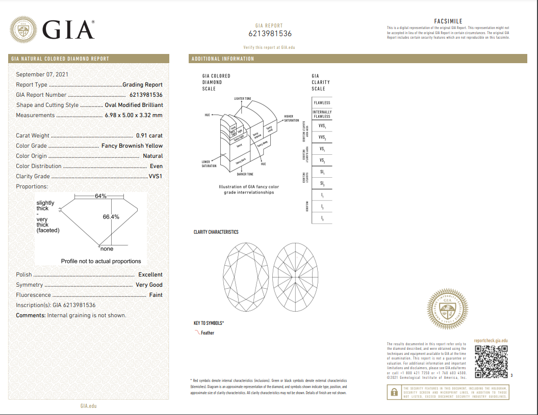 Loose oval brilliant Diamond of 0.91ct (with GIA report graded as Natural Fancy Brownish Yellow VVS1 #621981536). (New).