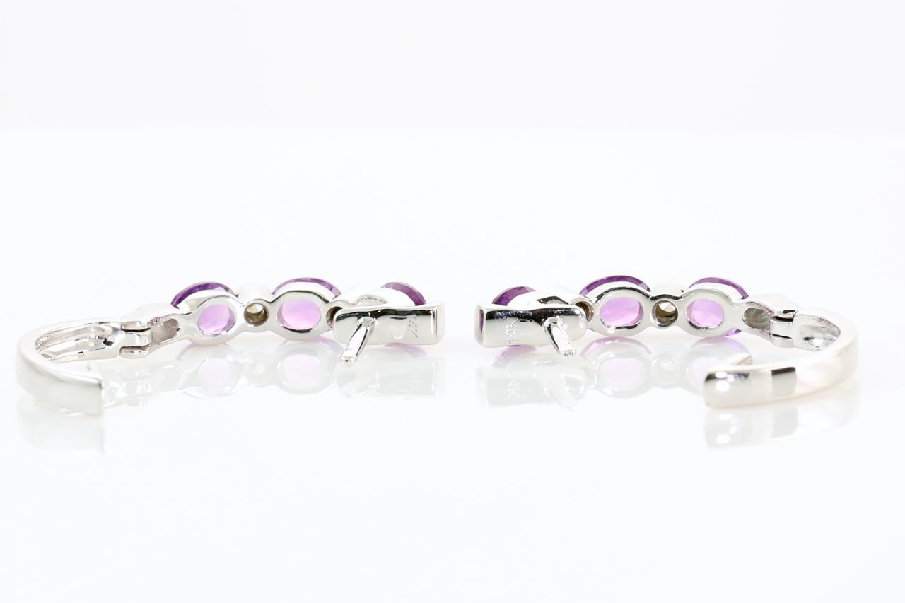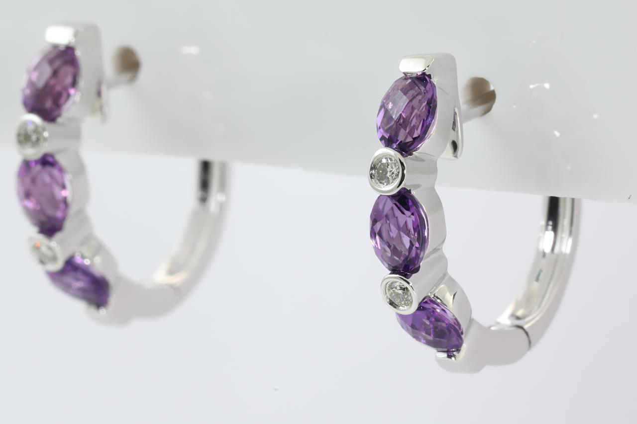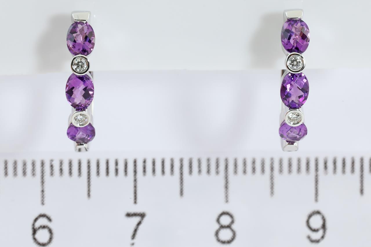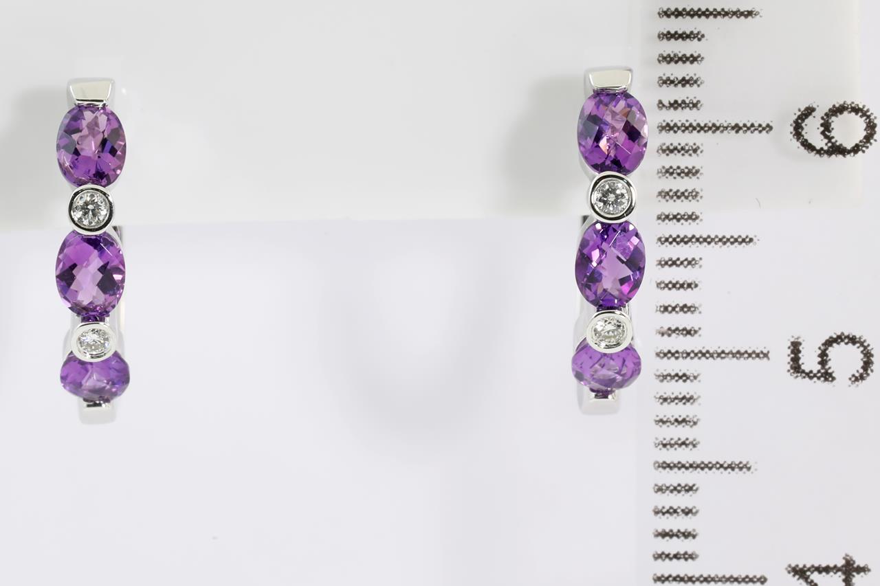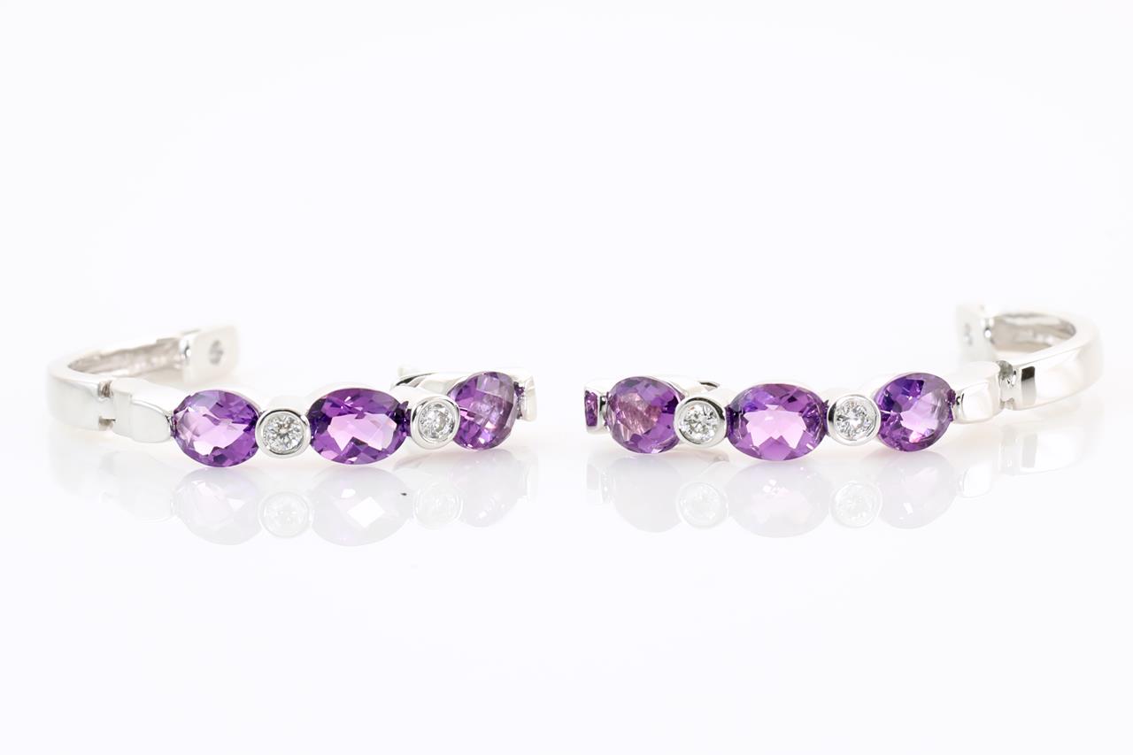 Amethyst and Diamond earrings with oval shape Amethyst totalling of 0.94cts and Diamonds totalling 0.05cts. 14ct White gold. Weight: 3.7g (New)
