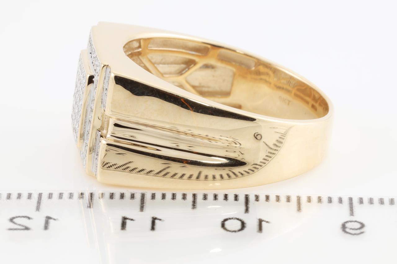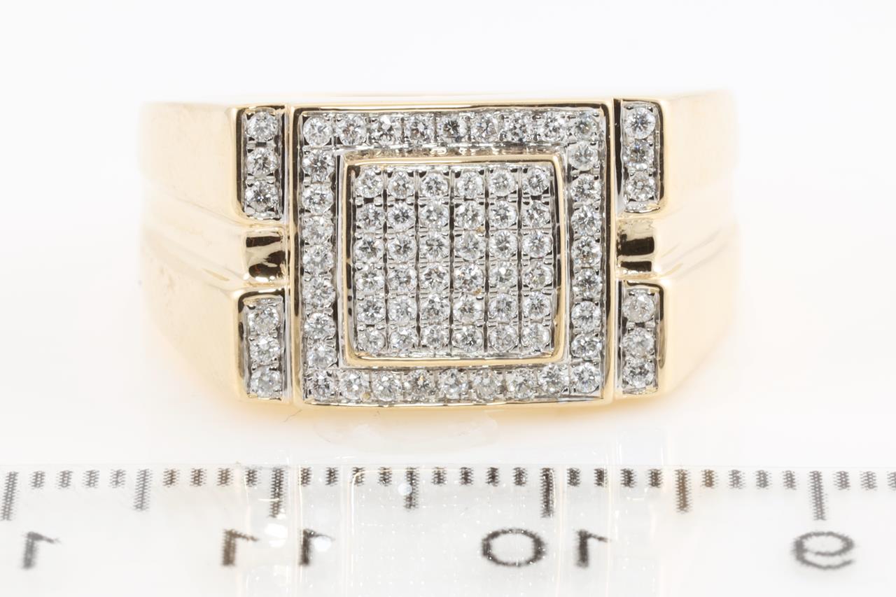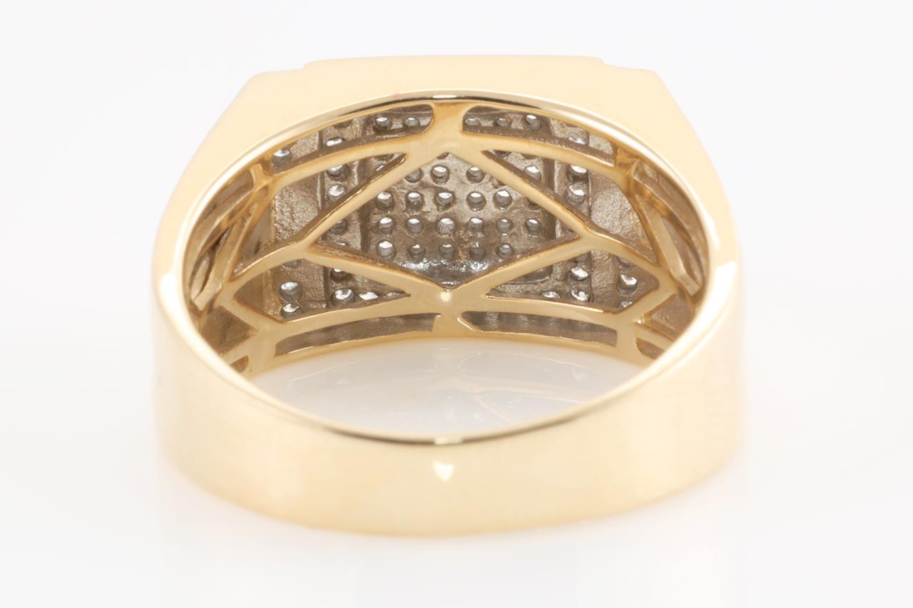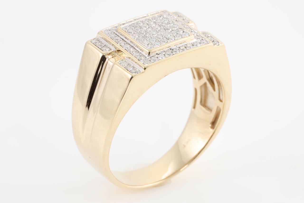 Diamond Mens ring with round Diamonds totalling 0.47cts (Estimated grading: H SI). 9ct yellow and white gold. Ring size V. Weight: 7.9g (New)