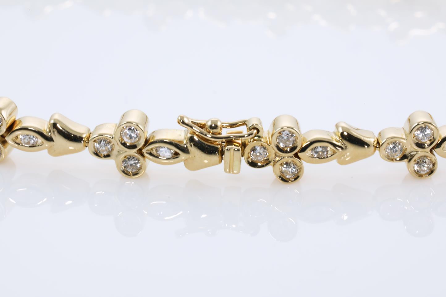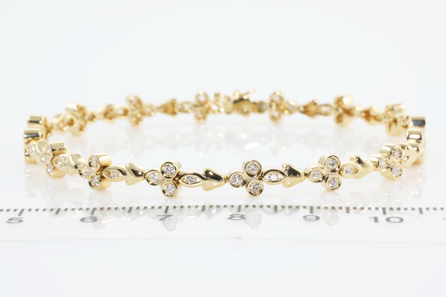 Diamond bracelet with round Diamonds totalling 0.97cts (Estimated grading: I VS-SI). 18ct yellow gold. Length: 18.5cm Weight: 12.5g (Pre-owned)