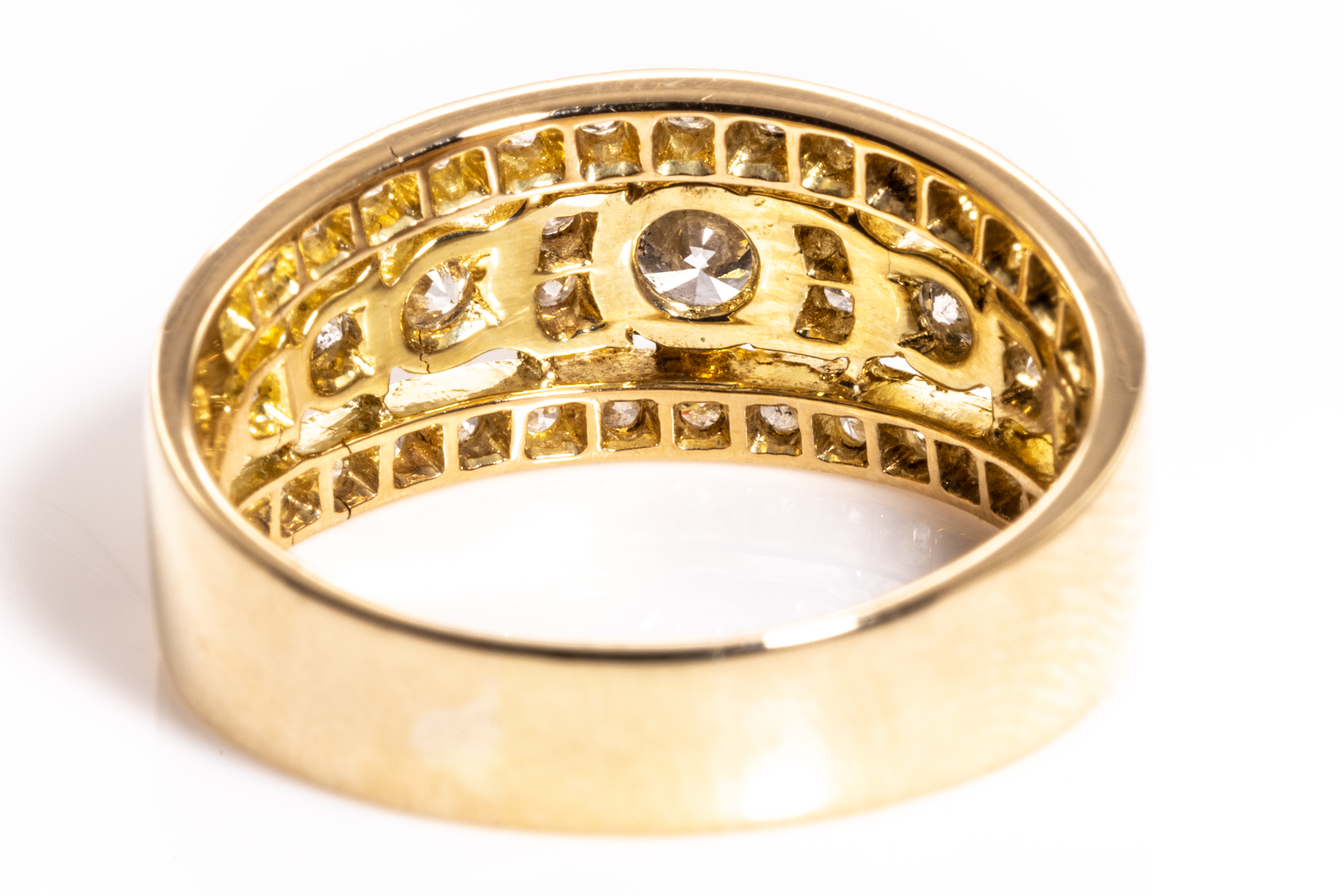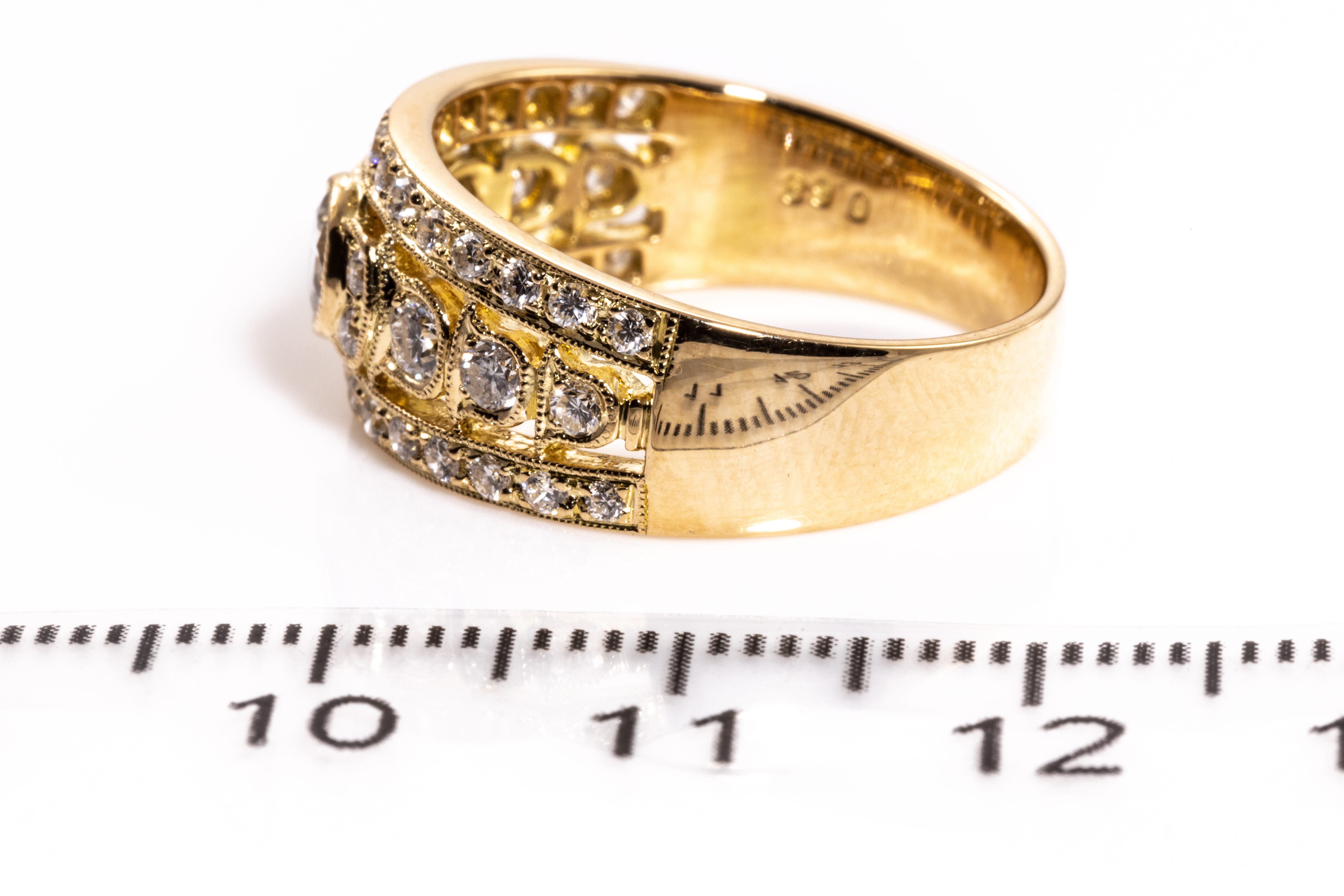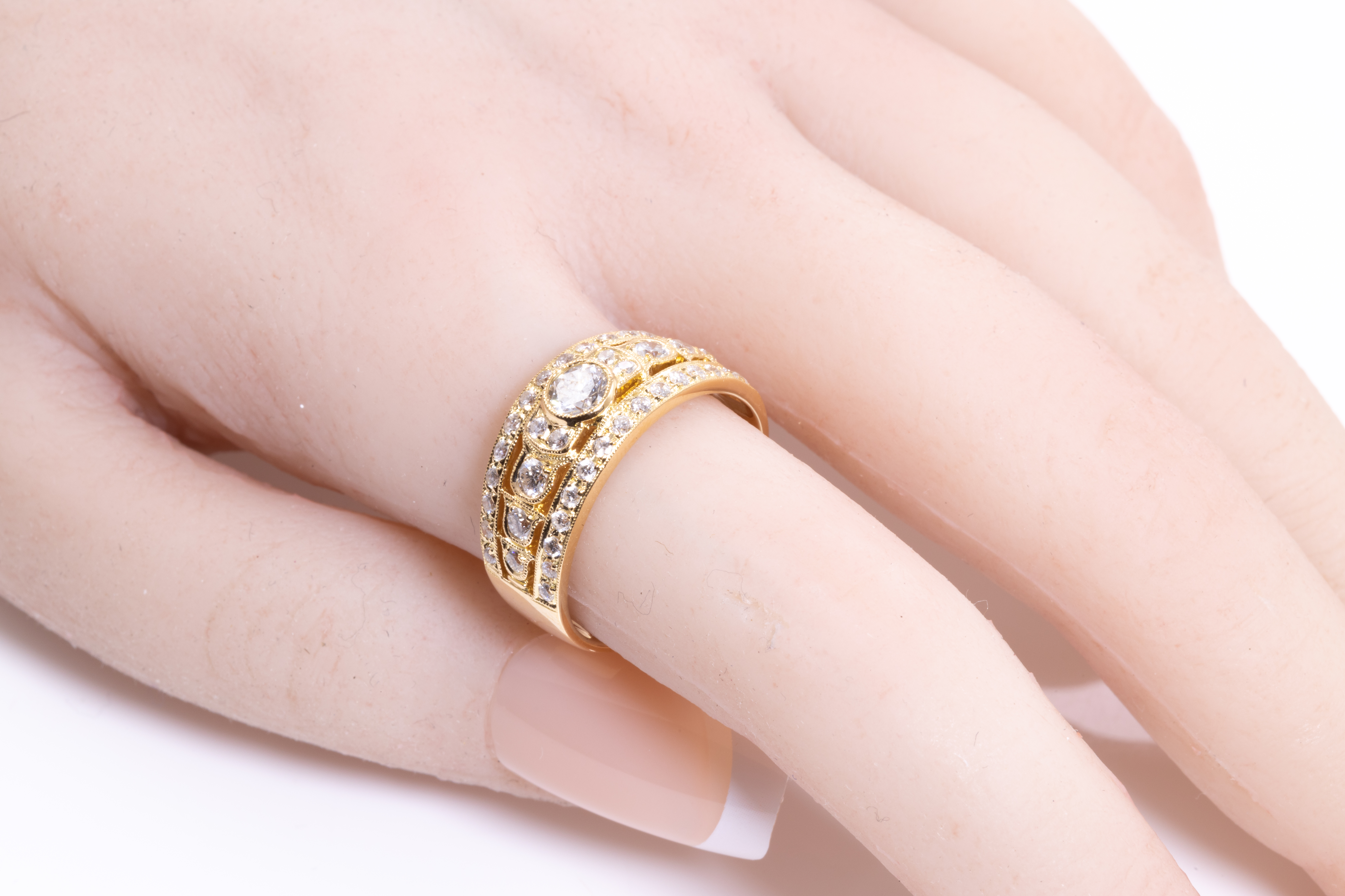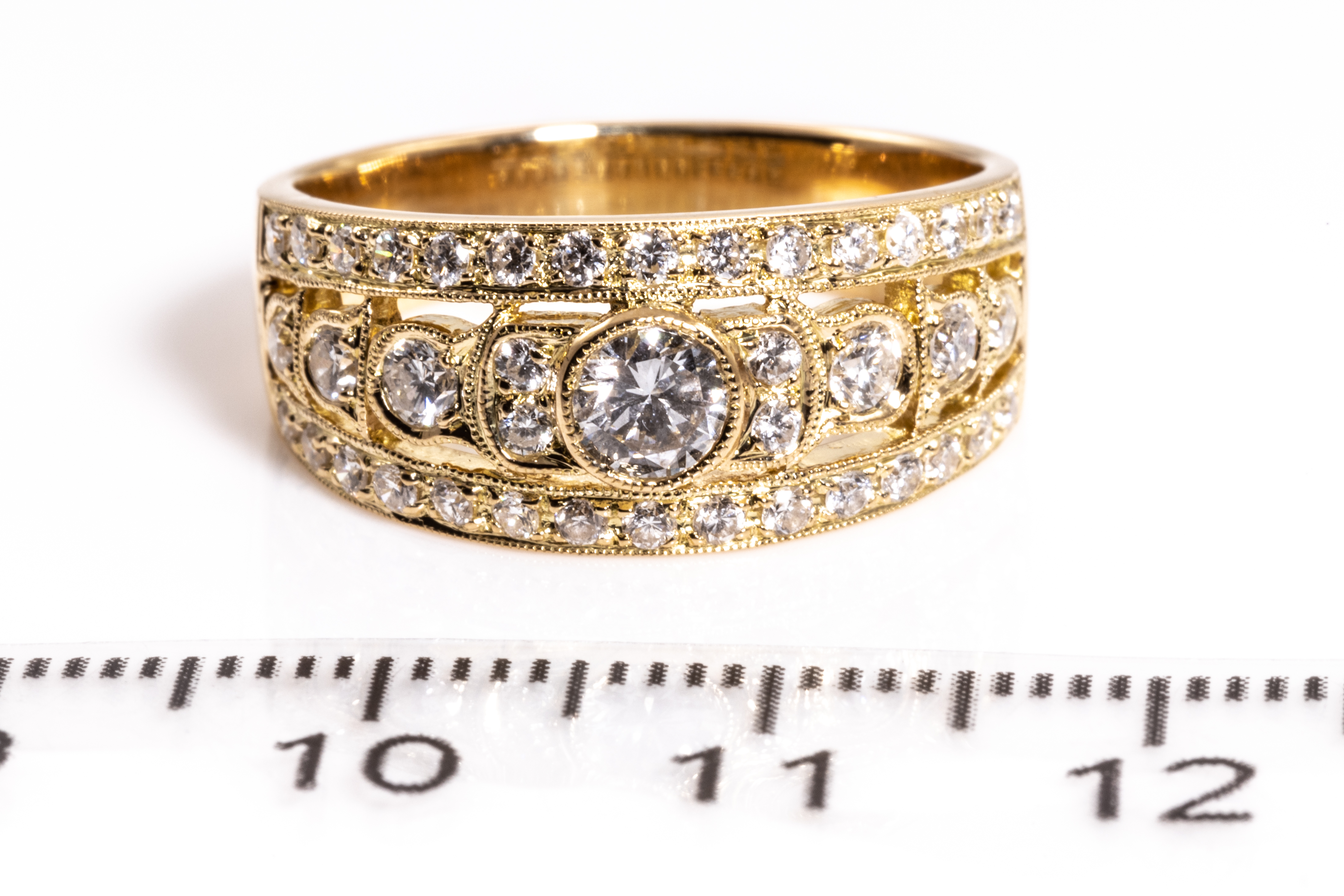 Diamond dress ring with Diamond totalling 0.98cts (Estimated grading H SI). 18ct yellow gold. Ring size P. Weight: 6.3g. (Pre-owned)