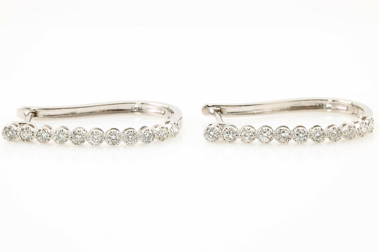 Diamond earrings with round Diamonds totalling 0.99cts (Estiated grading: H SI). 14ct White gold. Weight: 6g (New)