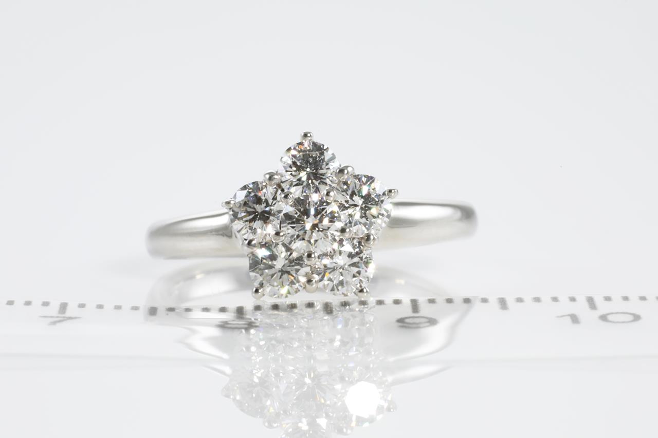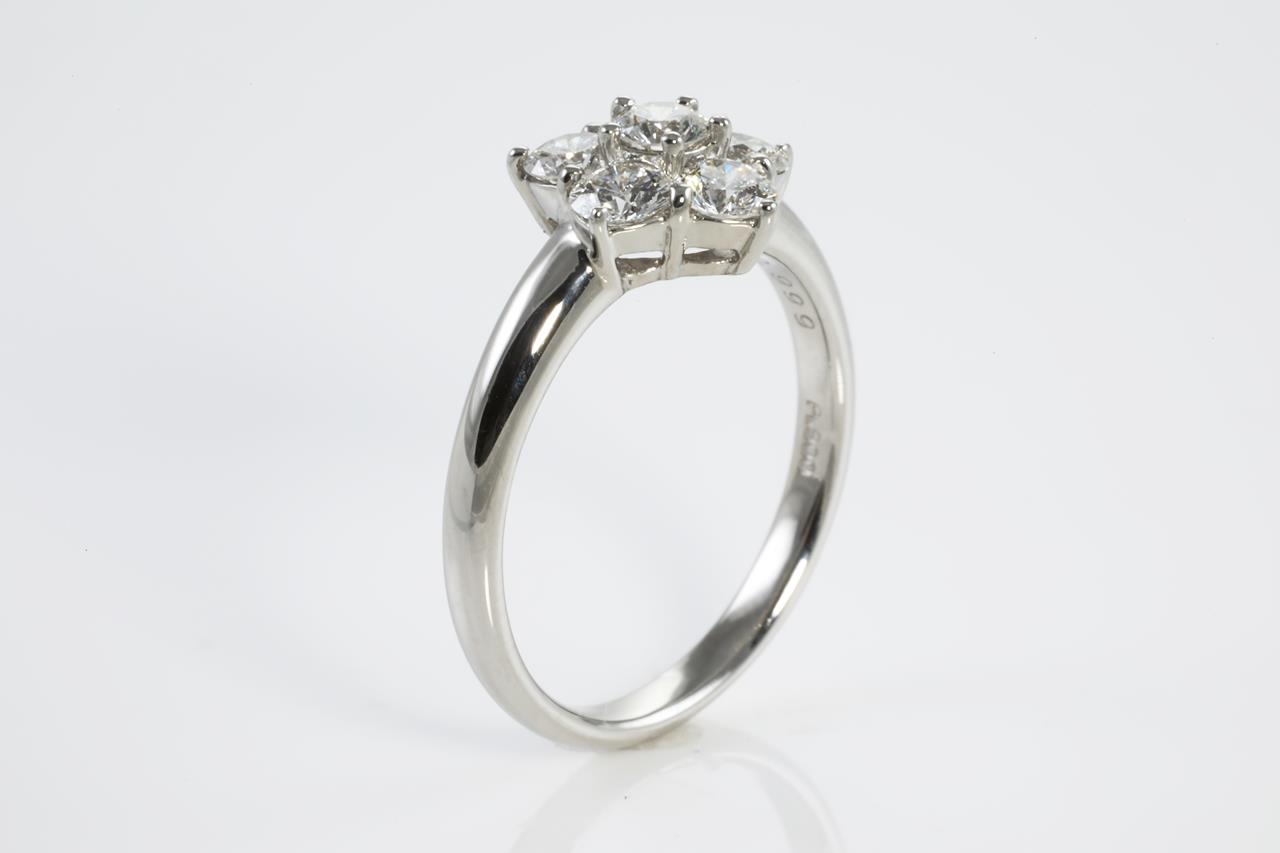 Diamond ring with 6 round Diamonds totalling 0.99cts (Estimated grading: G VS-SI). Platinum. Ring size M. Weight: 5.1g (Pre-owned)