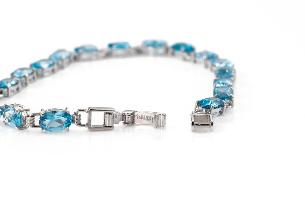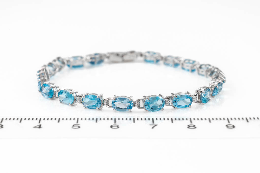 Topaz bracelet with oval shape blue Topaz totalling 10.00cts. 18ct white gold. Length: 18.5cm. Weight: 8.0g. (Pre-owned)