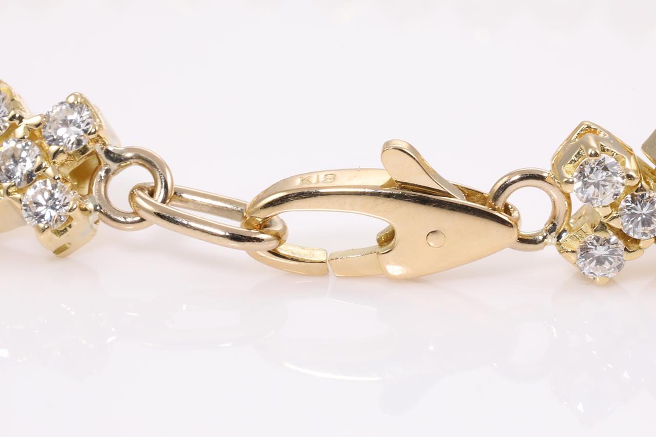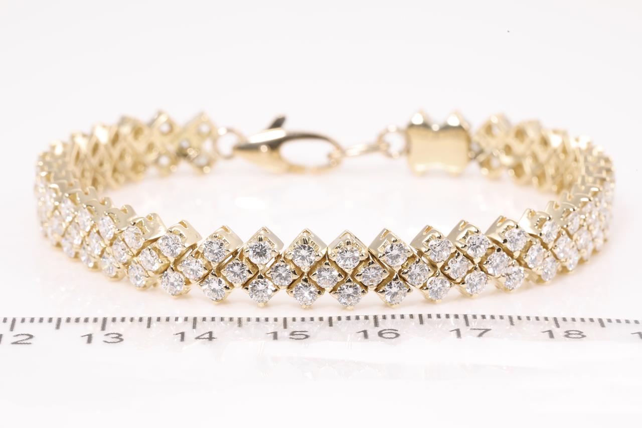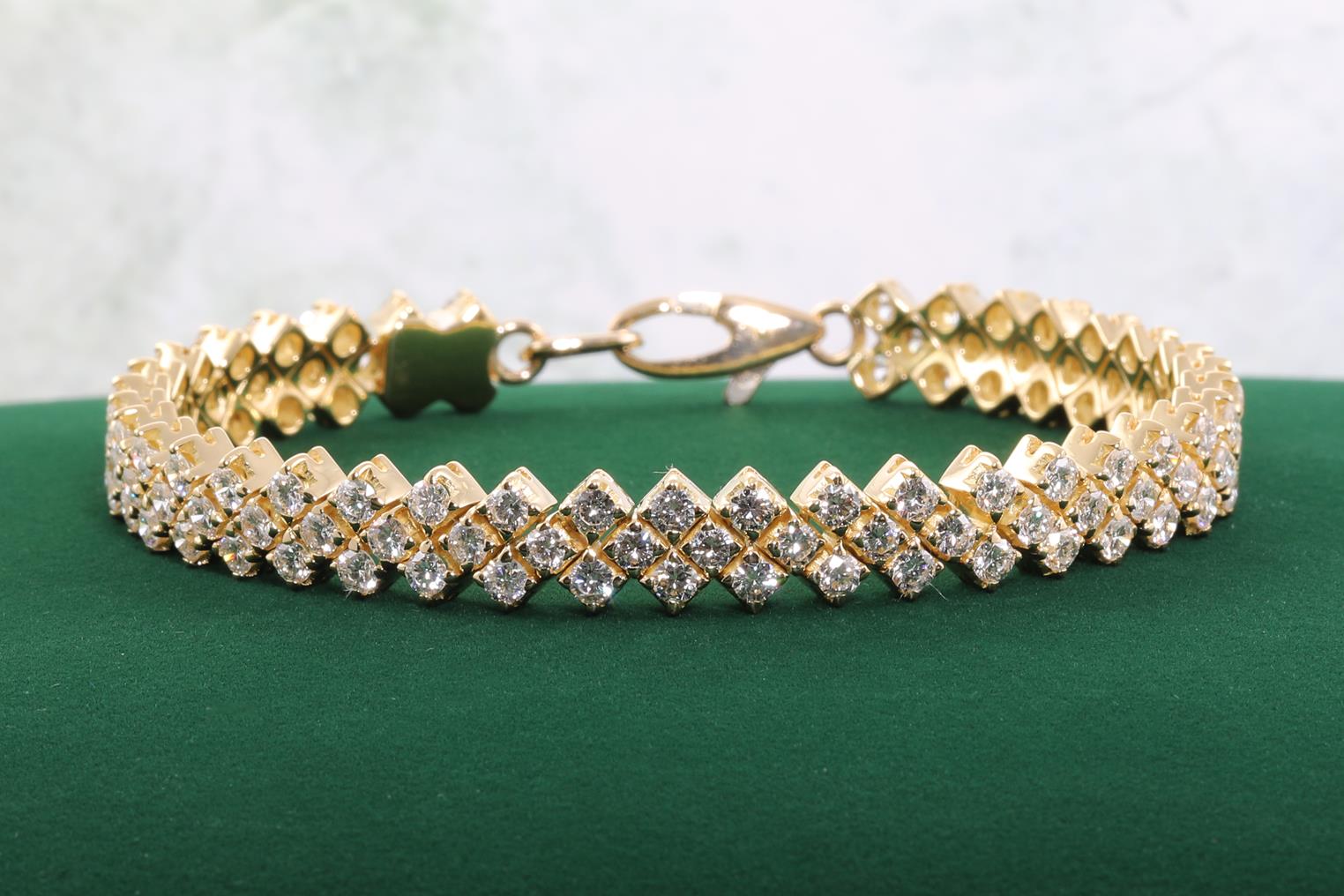 Diamond bracelet with 111 round Diamonds totalling approximately 10.00cts (Estimated grading: H-I SI). 18ct yellow gold. Length: 21cm. Weight: 35.6g. With certificate #414766. (Pre-owned)
