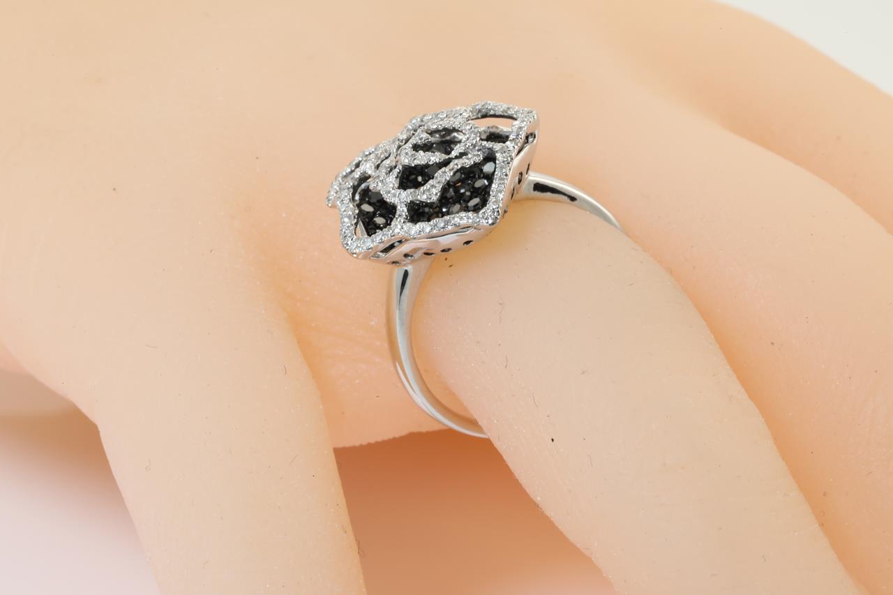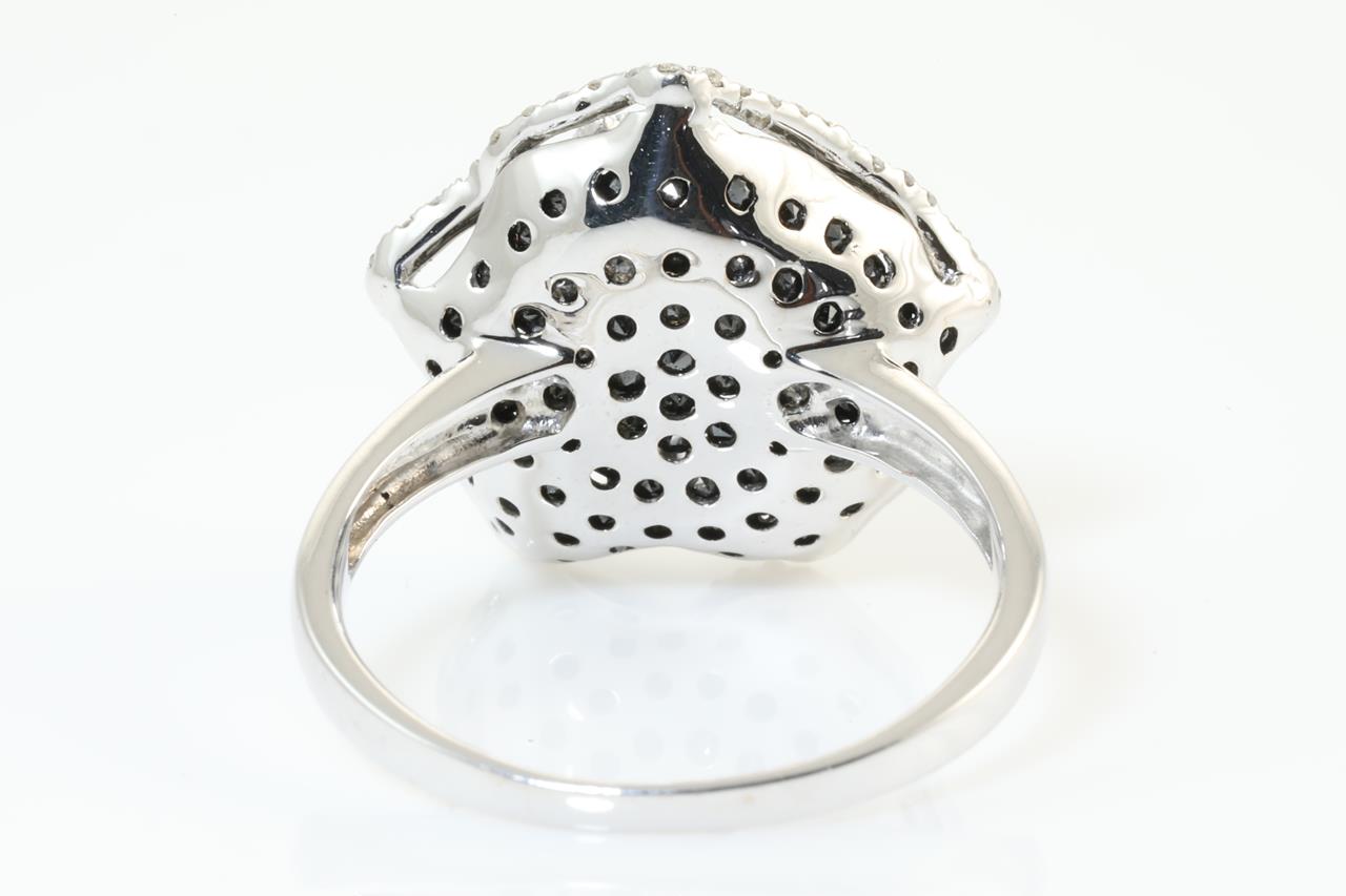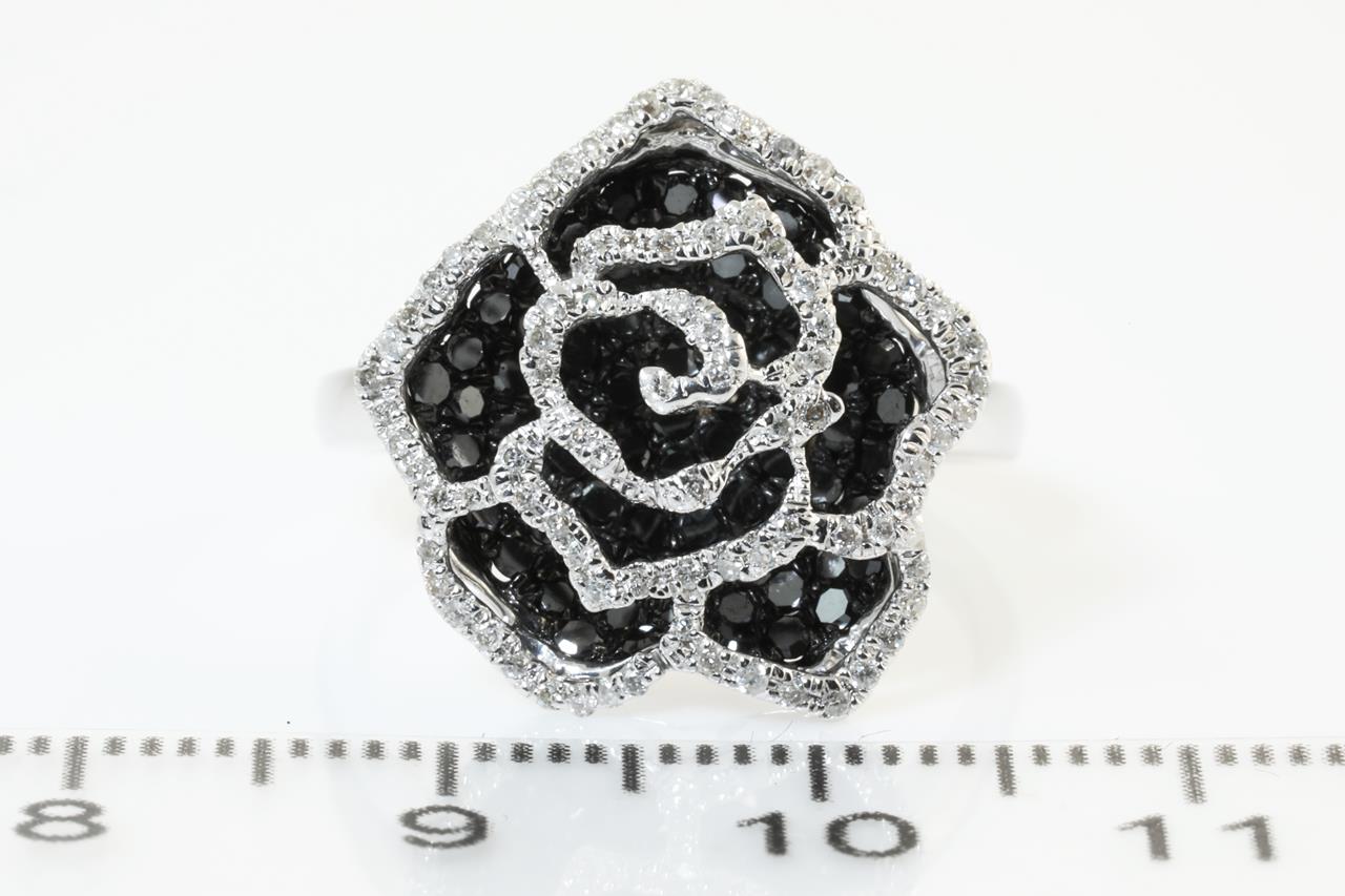 Diamond dress ring with round white Diamonds and black Diamonds (colour may be treated) totalling 1.00cts (Estimated grading: H P1-2). 18ct white gold. Ring size: N. Weight: 4.3g (Pre-owned)