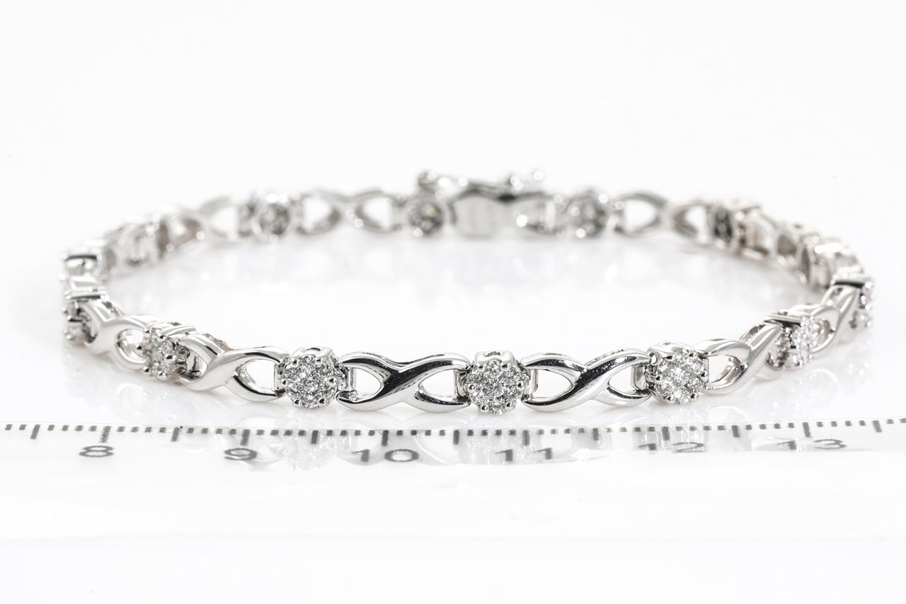 Diamond Bracelet with round Diamonds totalling 1.00cts (Estimated grading: H-I SI). 18ct white gold. Length: 19cm Weight: 11.6g (Pre-owned)