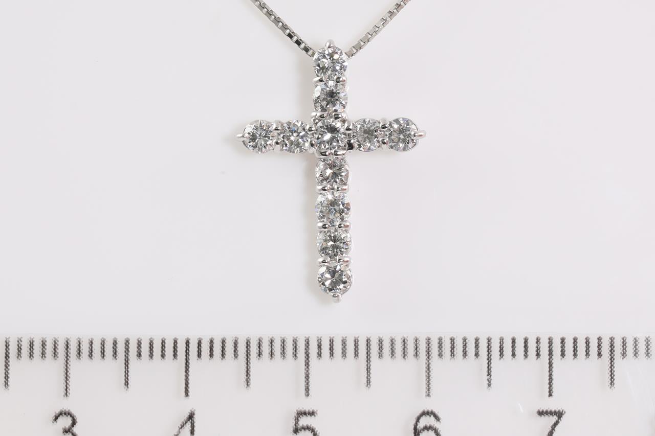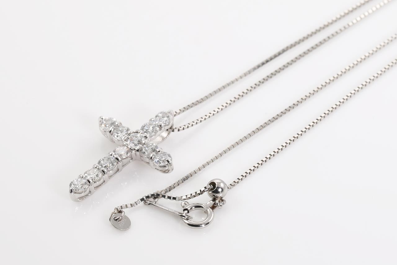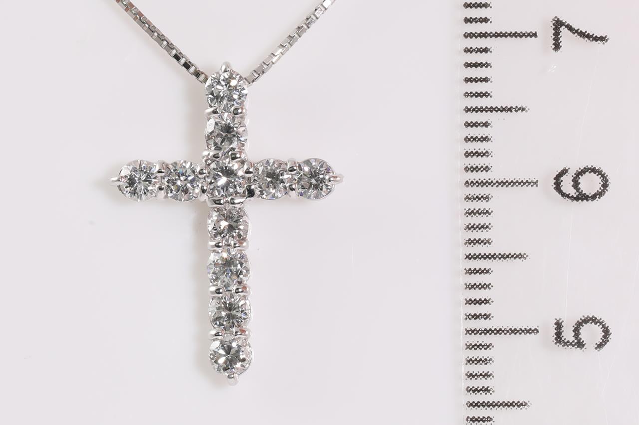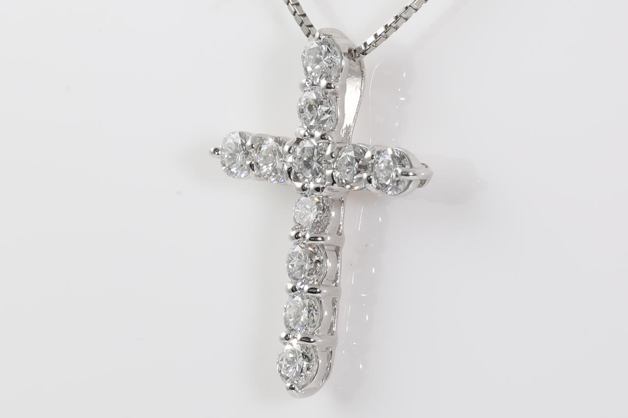 Diamond cross pendant with round Diamonds totalling 1.00cts (Estimated grading: H P1). Platinum with 45cm adjustable chain. Weight: 4.1g (Pre-owned)