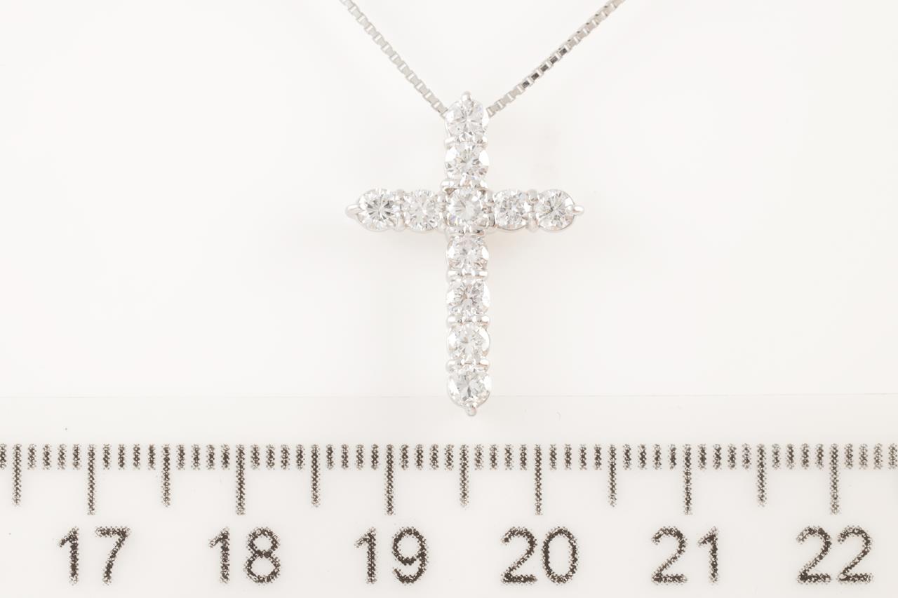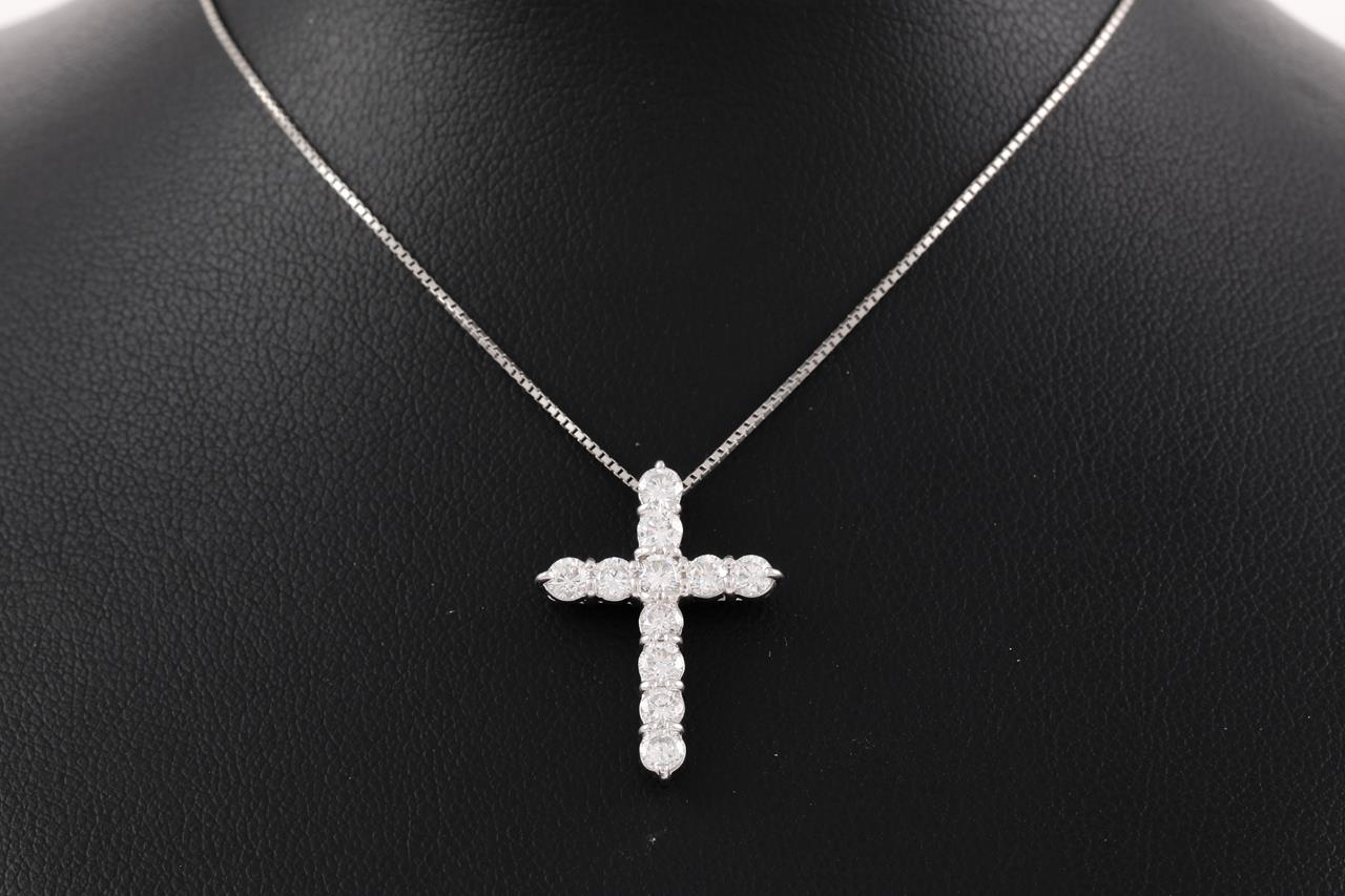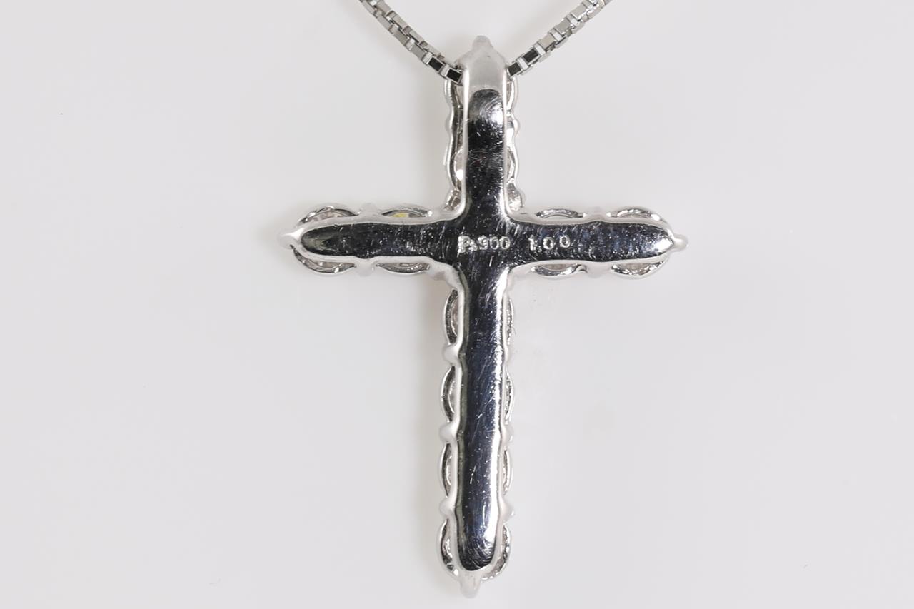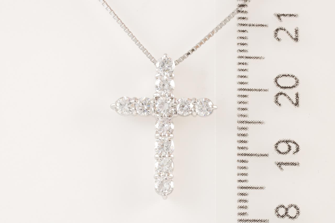 Diamond cross pendant with round Diamonds totalling 1.00cts (Estimated grading: H P1). Platinum with 45cm adjustable chain. Weight: 4.1g (Pre-owned)