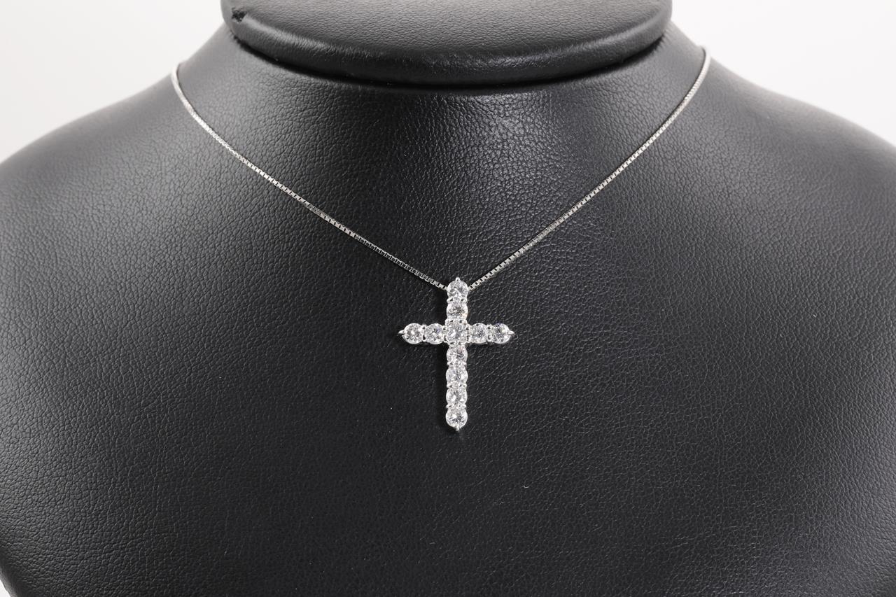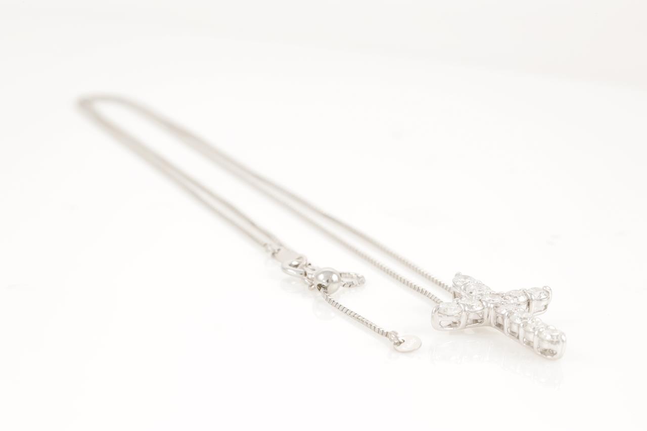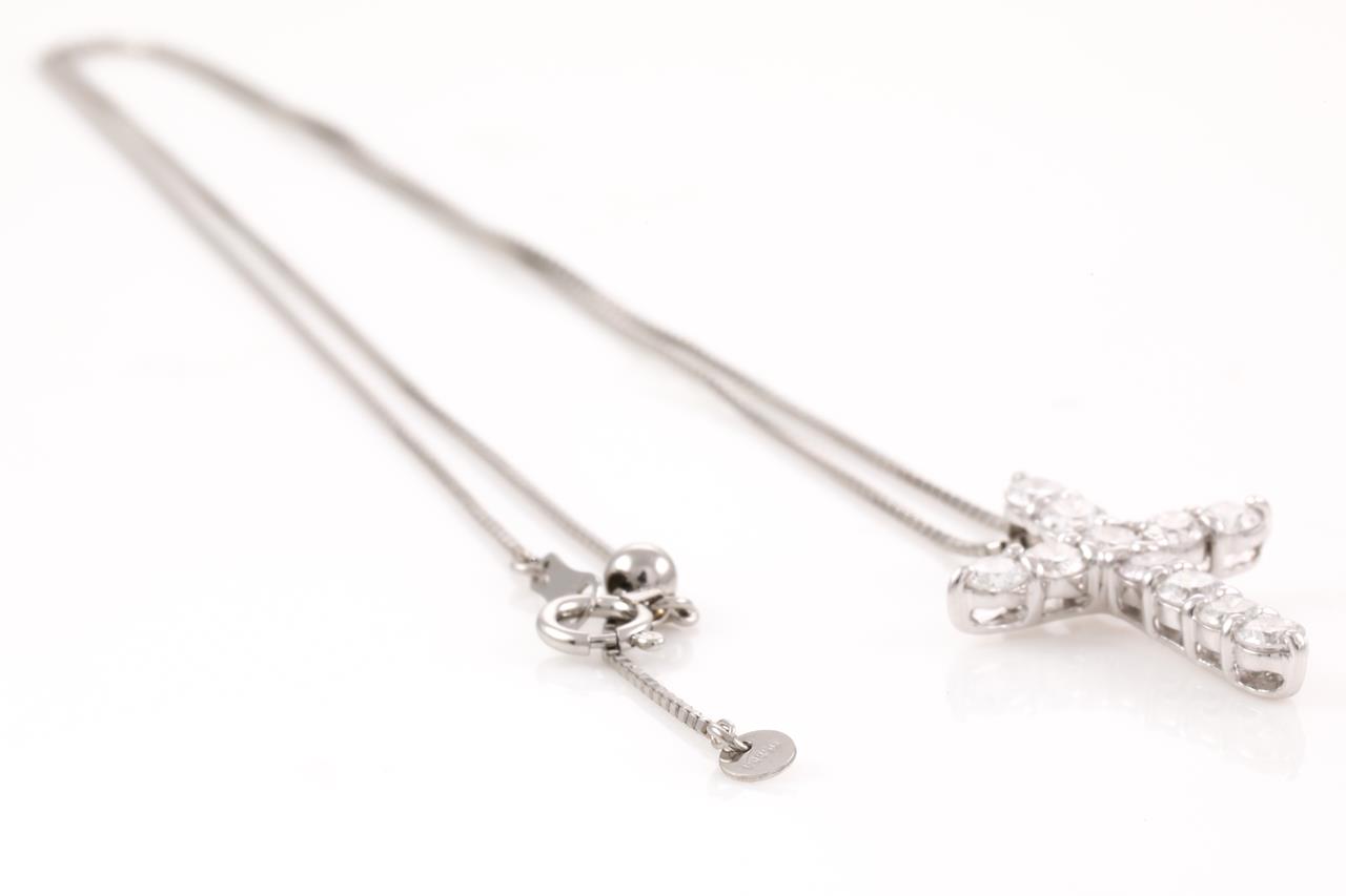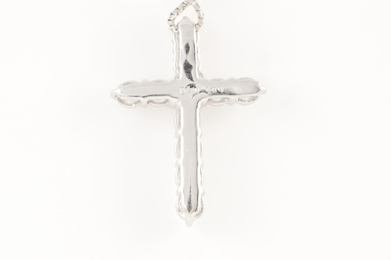 Diamond cross pendant with round Diamonds totalling 1.00cts (Estimated grading: H P1). Platinum with 45cm adjustable chain. Weight: 4.1g (Pre-owned)