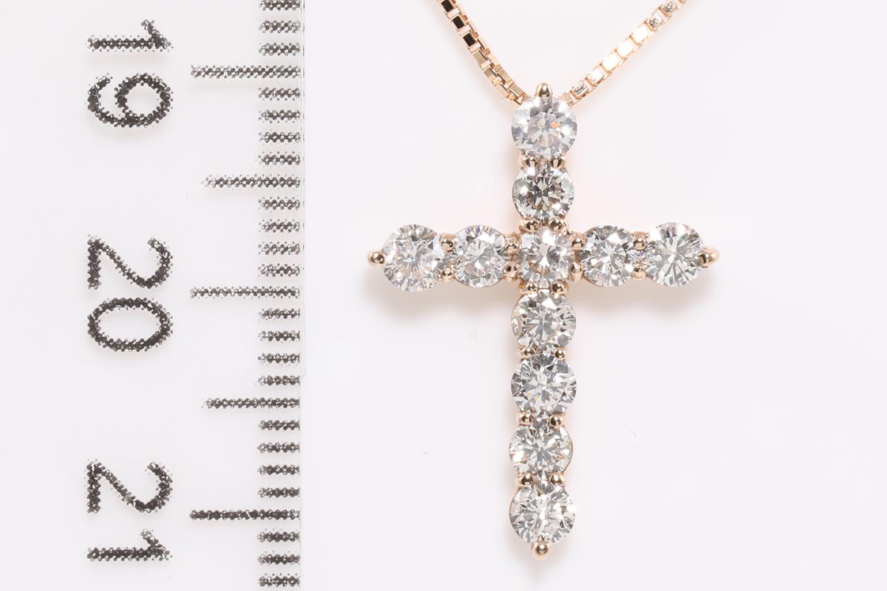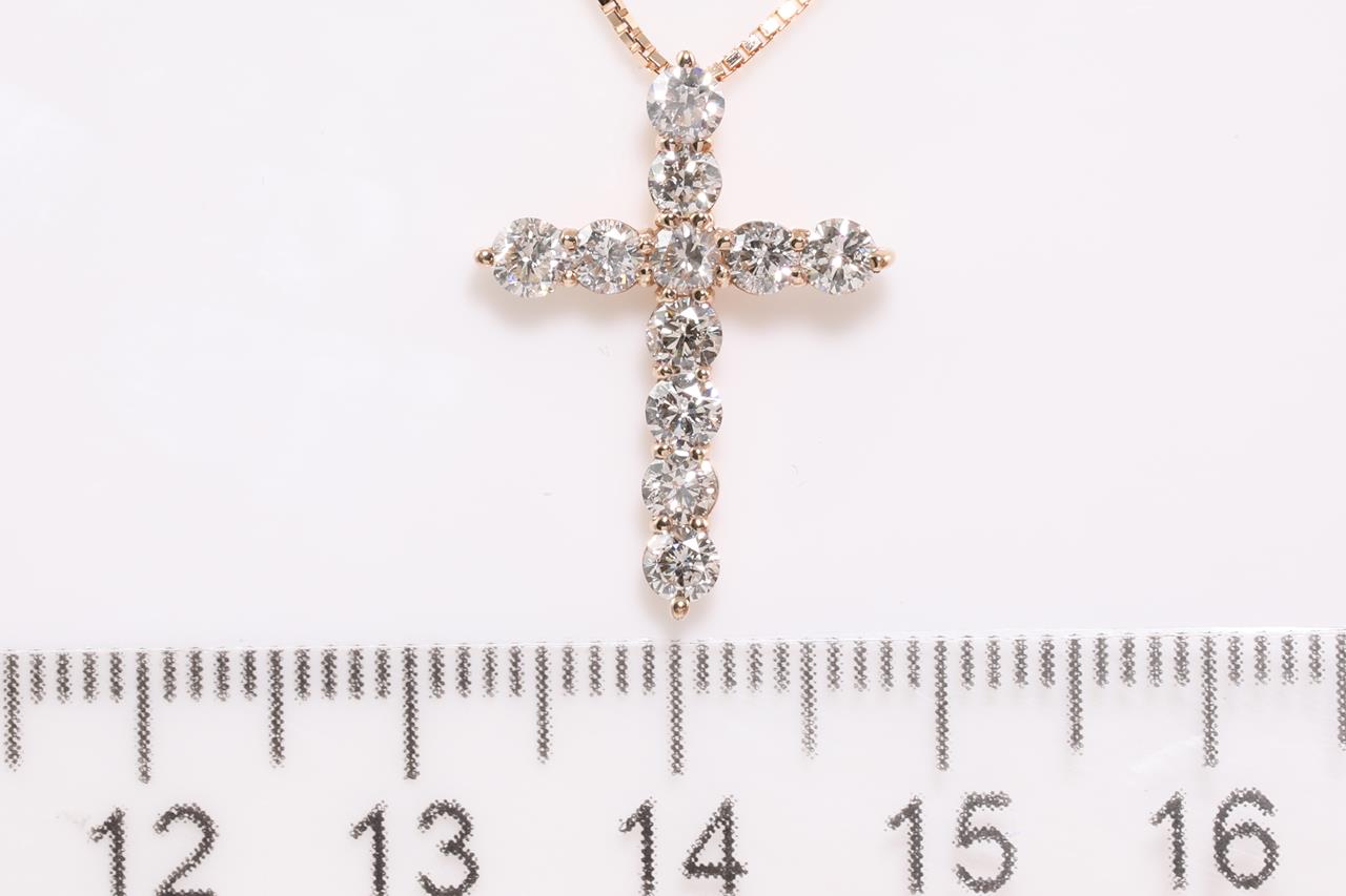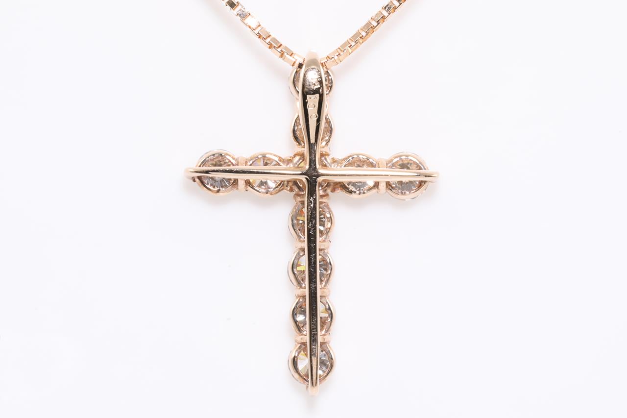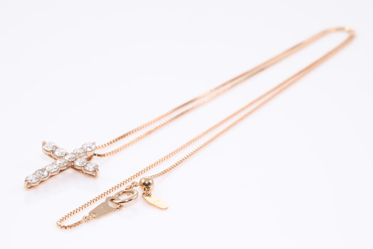 Diamond cross pendant with round Diamonds totalling 1.00cts (Estimated grading: H-I SI-P1). 18ct rose gold with adjustable 45cm chain. Weight: 3.3g. (Pre-owned)