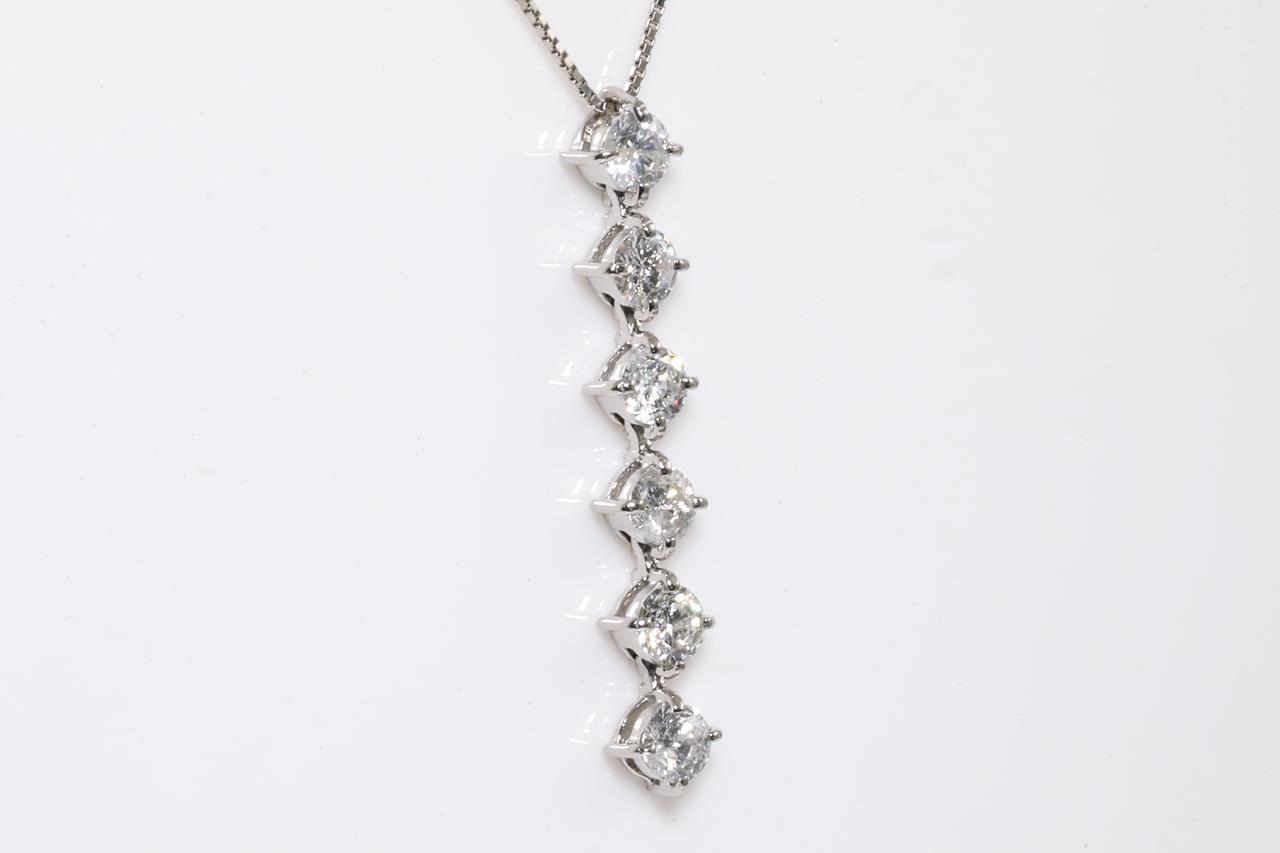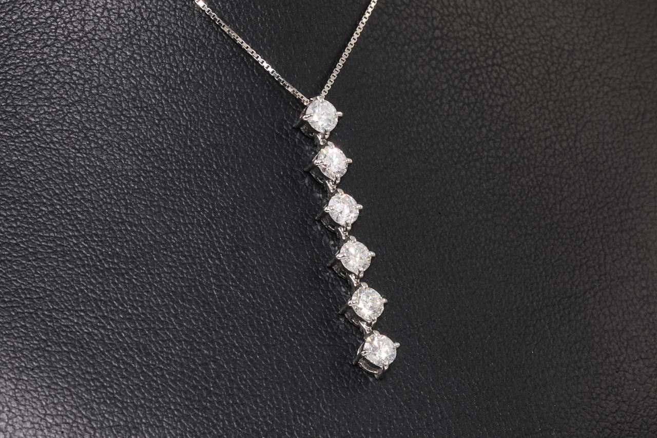 Diamond dress pendant with 6 round Diamonds totalling 1.00cts (Estimated grading: H-I P1). Platinum with 40cm adjustable chain. Weight: 3.8g. (Pre-owned)