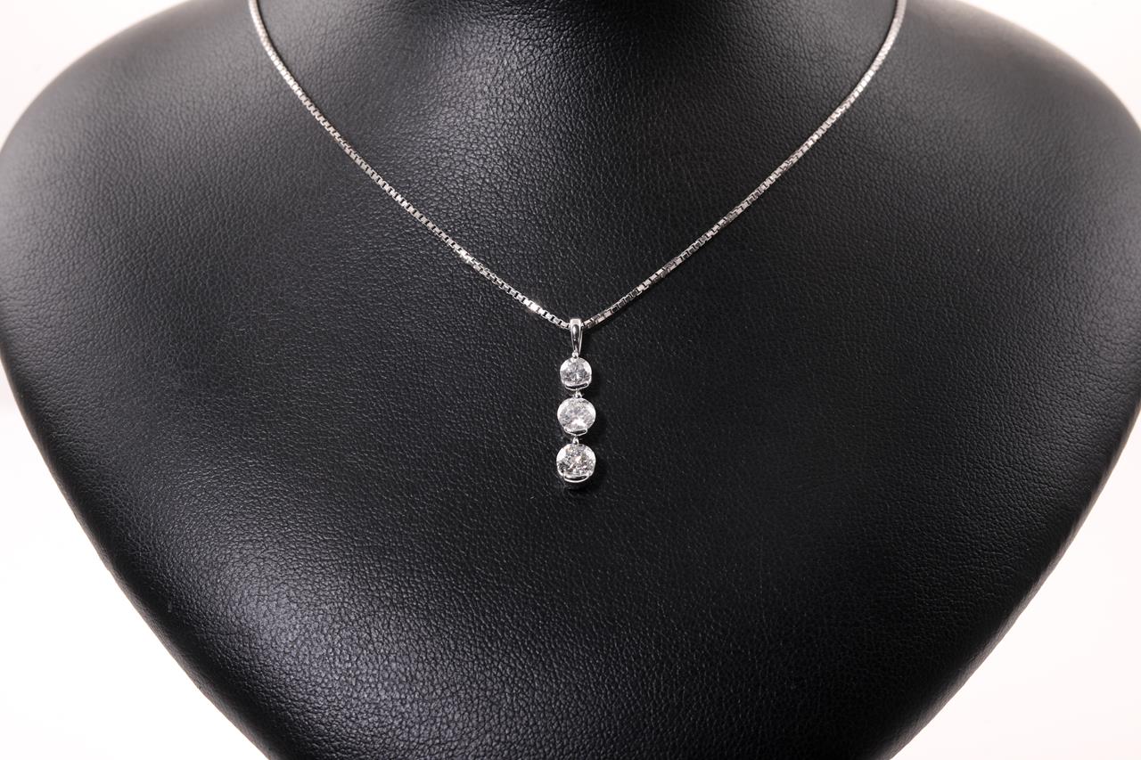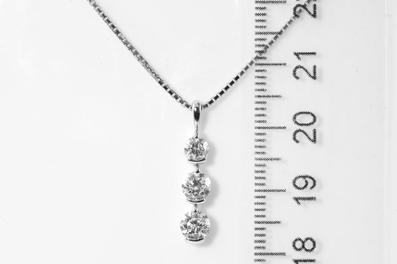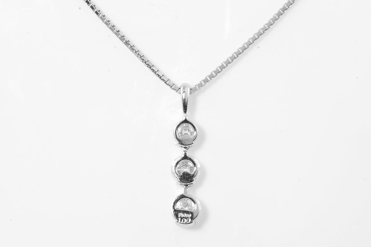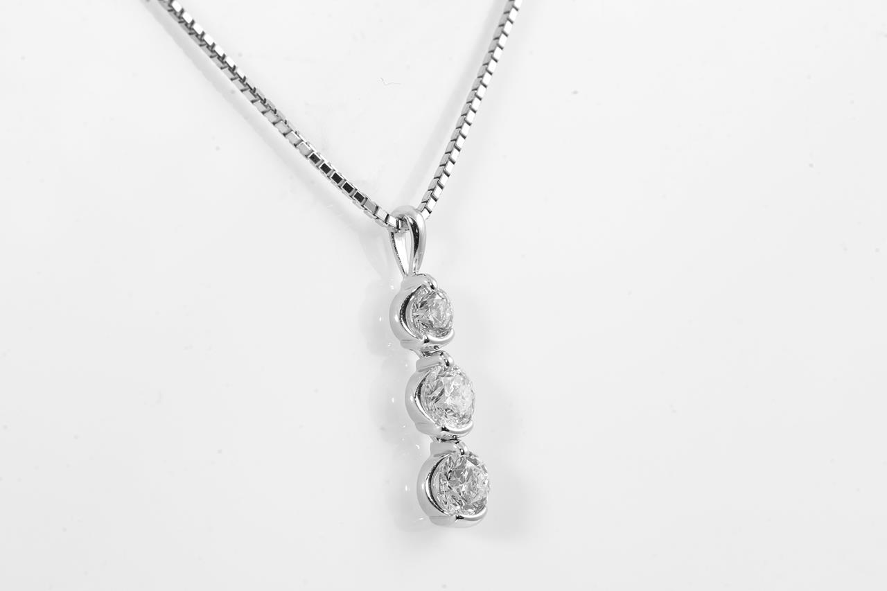 Diamond dress pendant with 3 round Diamonds totalling 1.00cts (Estimated grading: H P1). Platinum with 45cm chain. Weight: 6.2g. (Pre-owned)