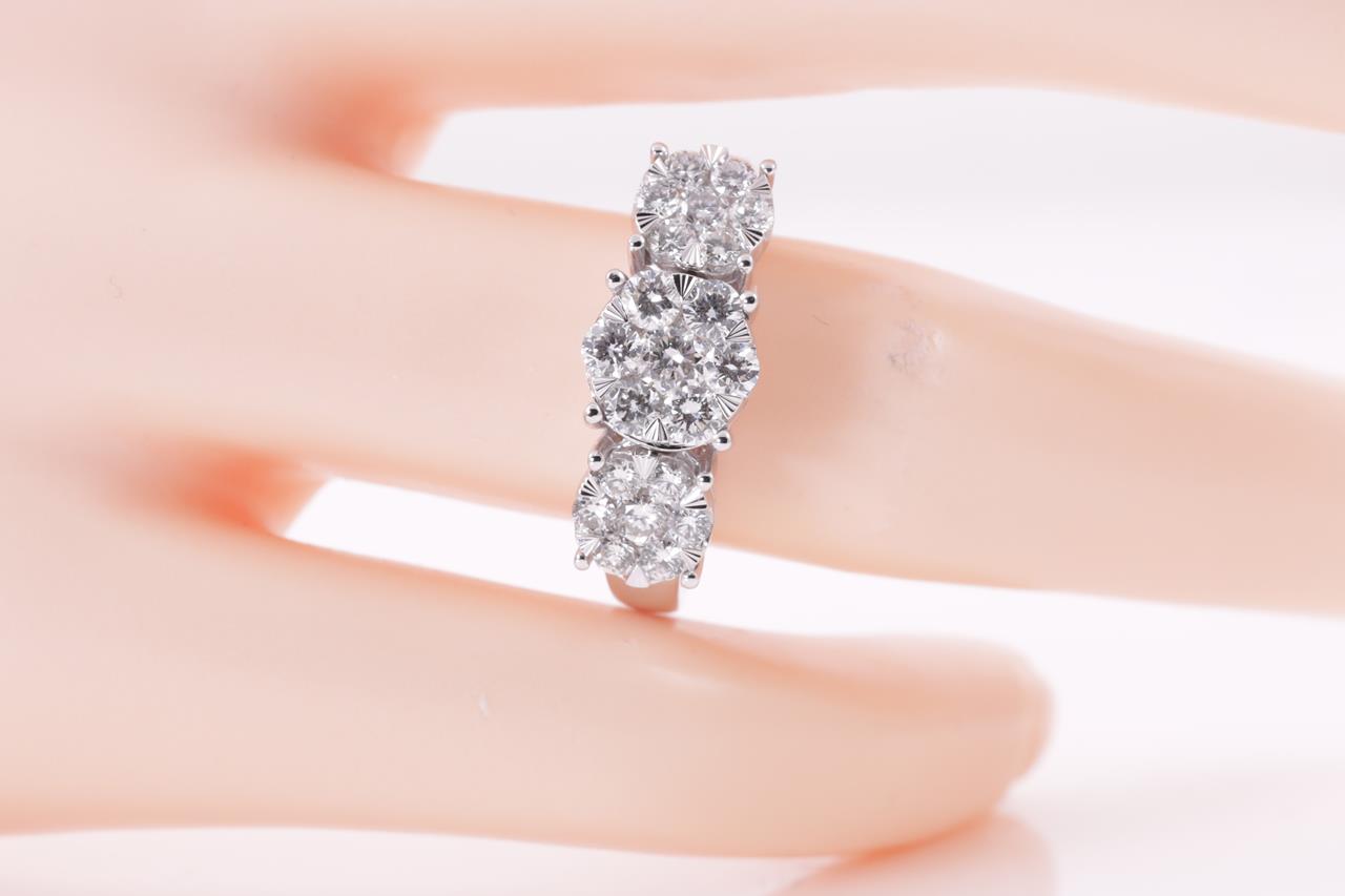 Diamond dress ring with 21 round Diamonds totalling 1.00cts (Estimated grading: H SI). 14ct white gold. Size: M1/2. Weight: 5.2g. (New)