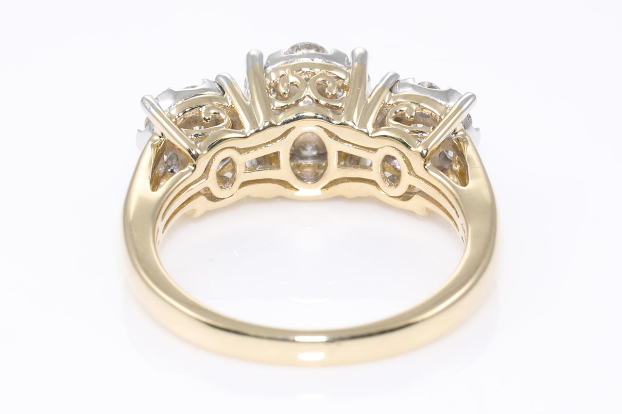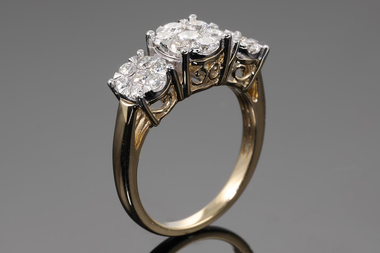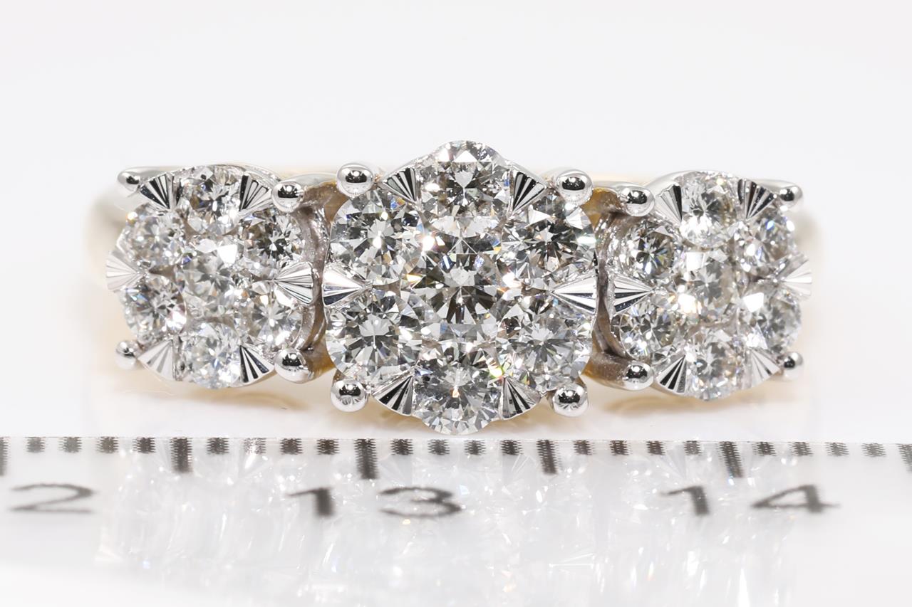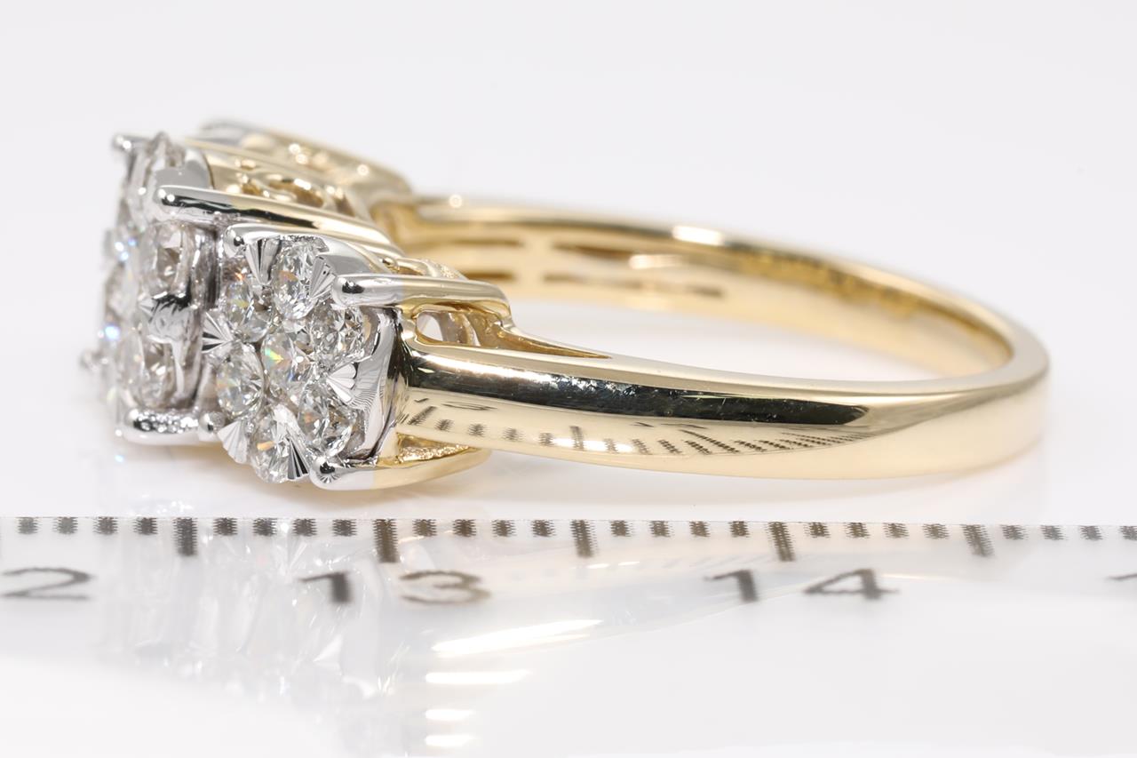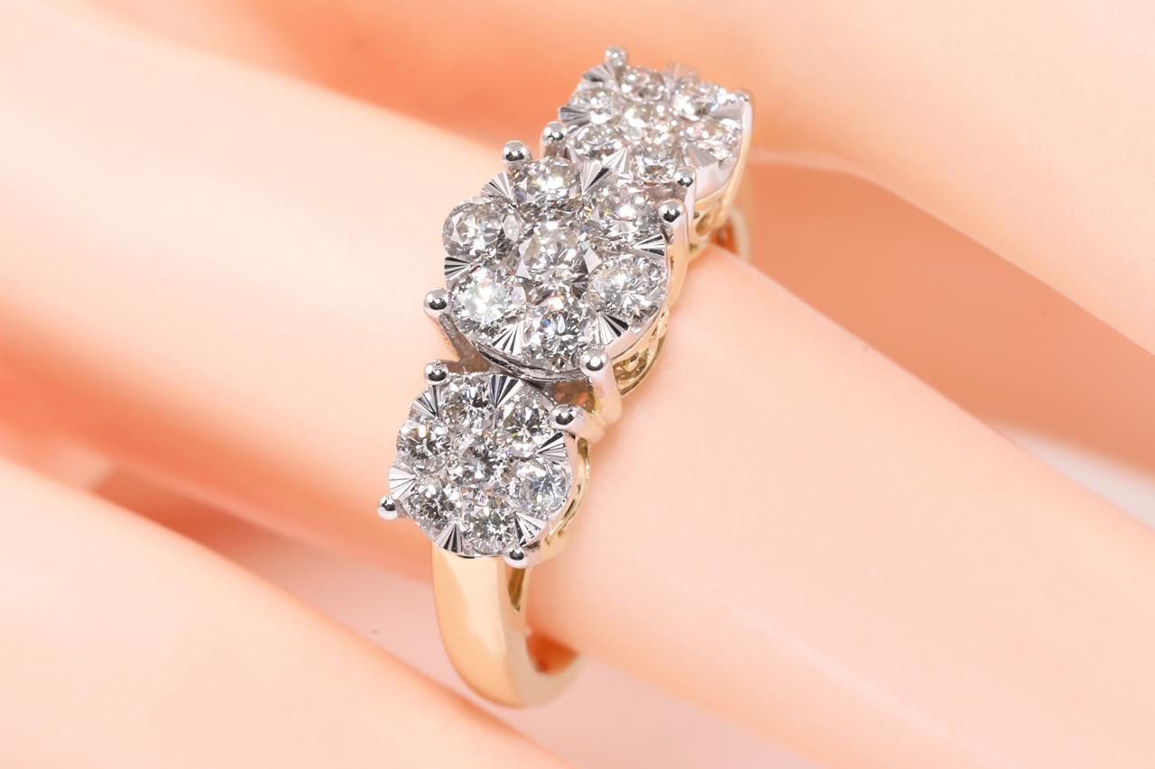 Diamond dress ring with 21 round Diamonds totalling 1.00cts (Estimated grading: H SI). 14ct yellow and white gold. Size: M1/2. Weight: 4.8g. (New)