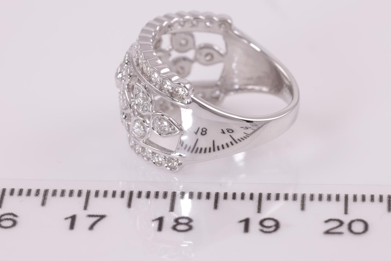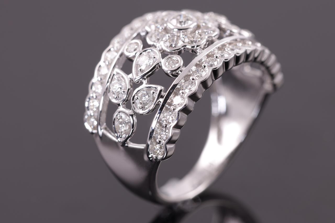 Diamond dress ring with round Diamonds totalling 1.00cts (Estimated grading: H SI). 14ct white gold. Size: M. Weight: 5.3g. (New)