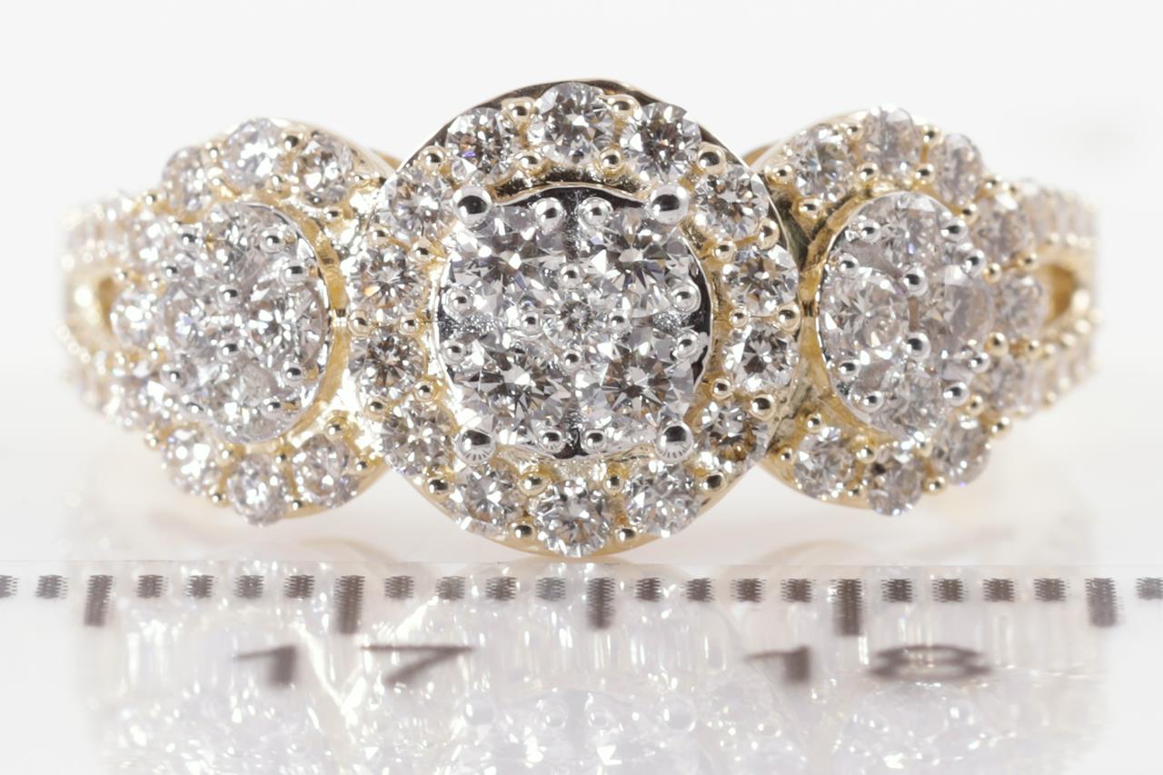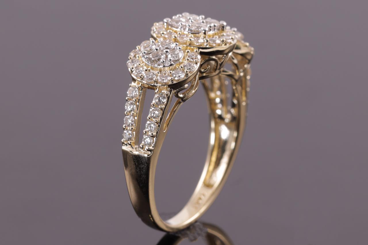 Diamond dress ring with round Diamonds totalling 1.00cts (Estimated grading: H SI). 14ct yellow and white gold. Size: N - can be resized up by a maximum of 3 sizes, down with ring clip. Weight: 3.9g. (New)