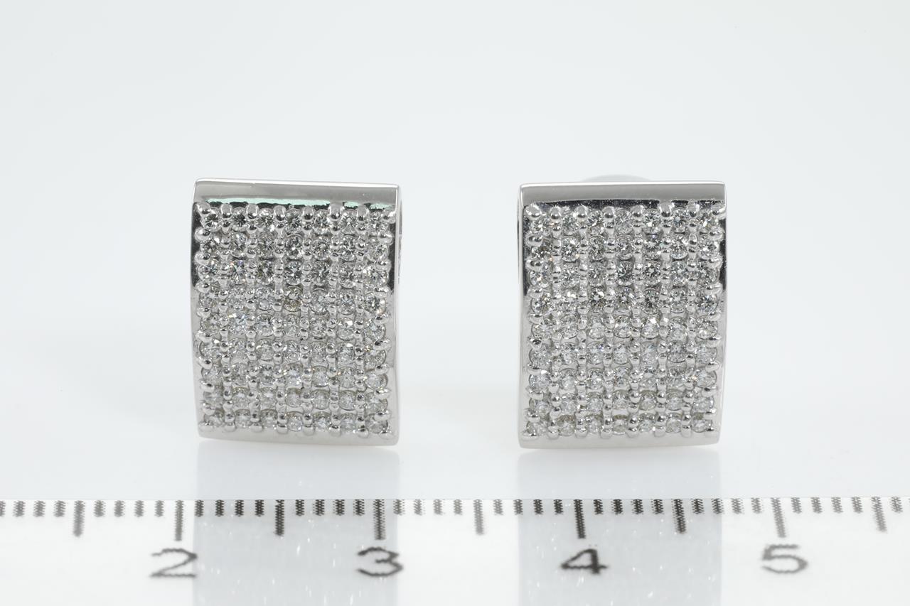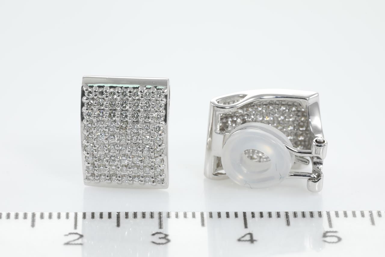 Diamond clip-on earrings (for pierced and non pierced ears) with round Diamonds totalling 1.00cts (Estimated grading: G SI). 18ct white gold. (Pre-owned)