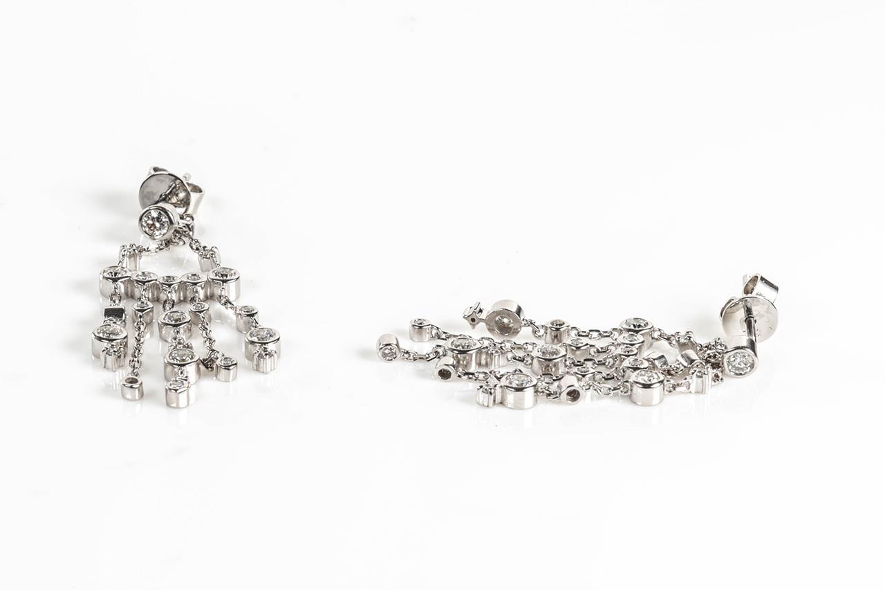 Diamond Earrings with round Diamonds totalling 1.00cts (Estimated grading: I-J P1-P3). 18ct white gold. Weight: 6.1g (Pre-owned)