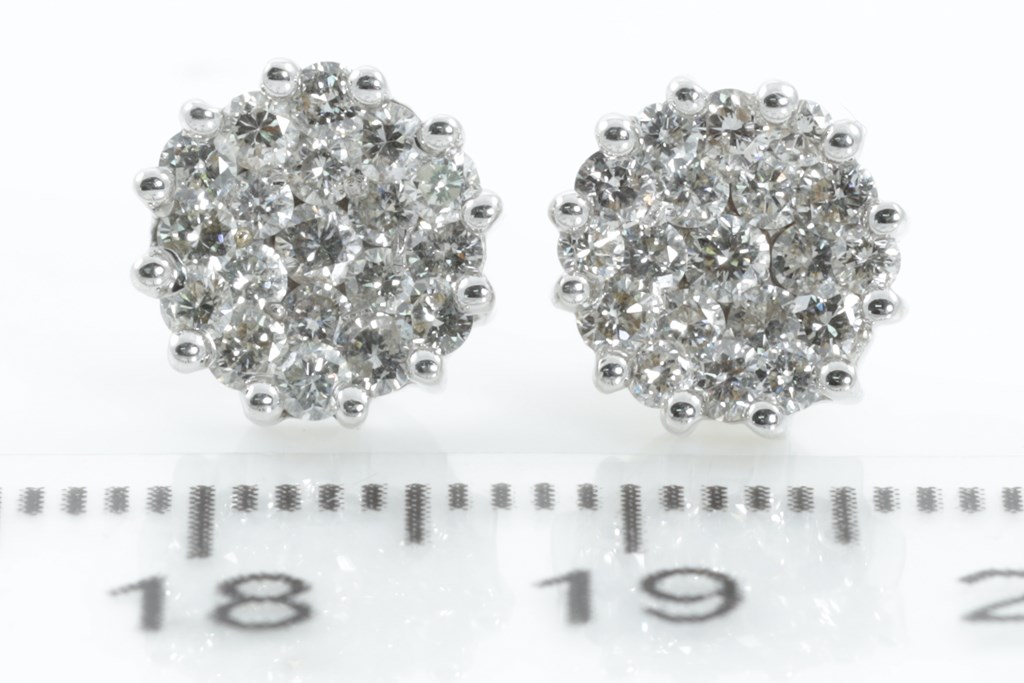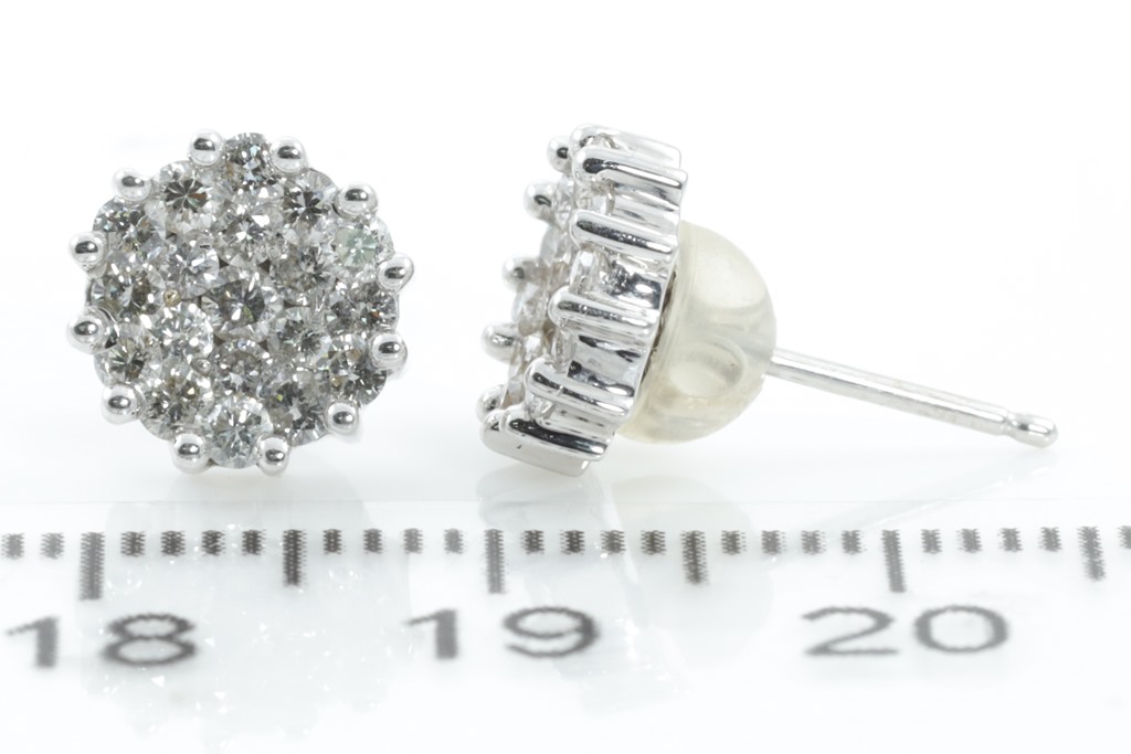 Diamond earrings with round Diamonds totalling 1.00cts (Estimated grading: I-K SI). 18ct white gold with gold & silicon backs. Weight: 2.6g (Pre-owned)