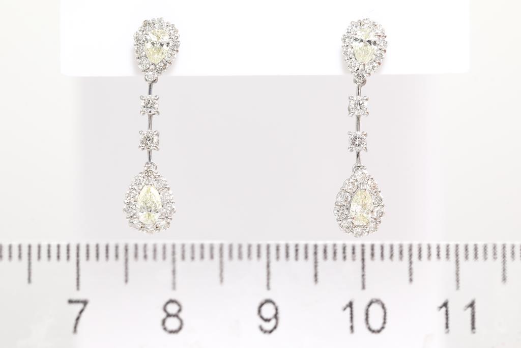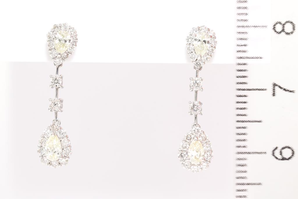 Diamond Dress Earrings with 4 pear shape Diamonds (Estimated grading: M SI) & round diamonds totalling 1.00cts (Estimated grading: I-J SI). Platinum with platinum & silicon backs. Weight: 2.8g. (Pre-owned)