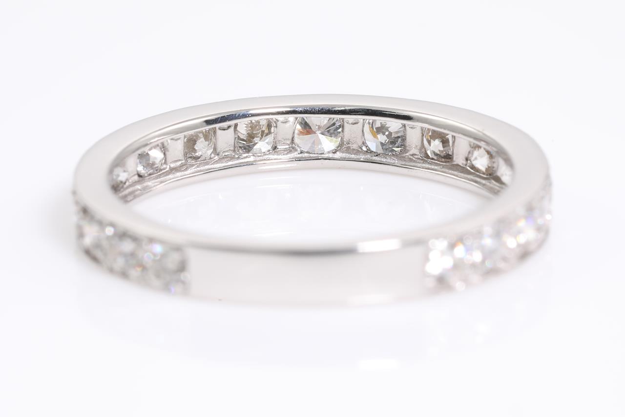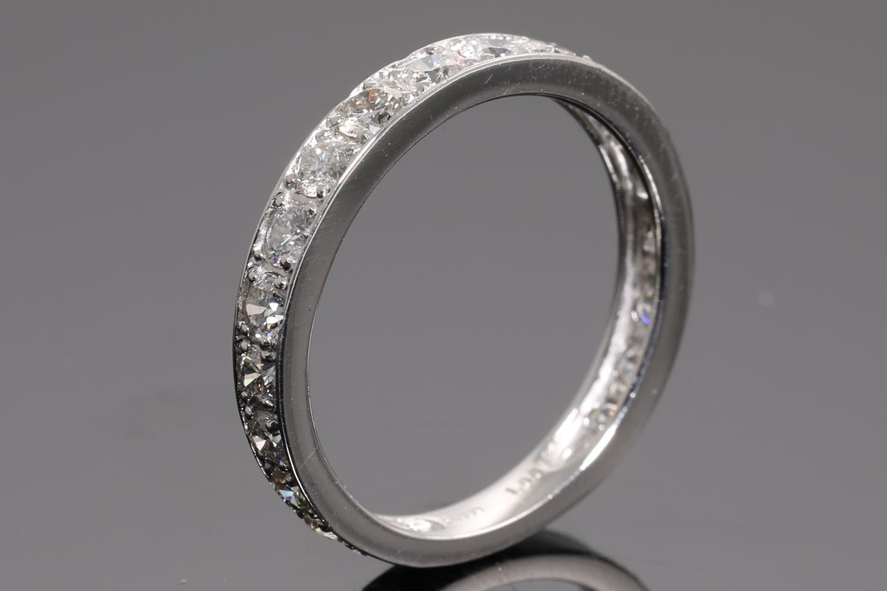 Diamond eternity ring with round Diamonds totalling 1.00cts (Estimated grading: H SI-P1). Platinum. Ring size K1/2. Weight: 2.3g (Pre-owned)