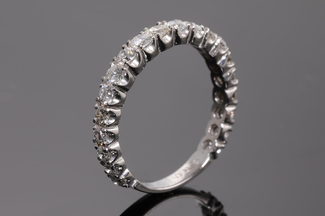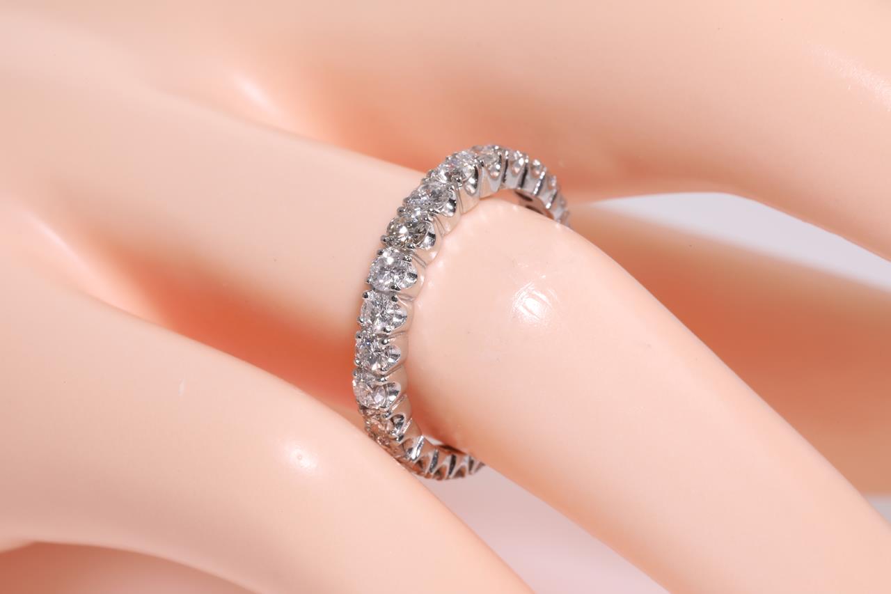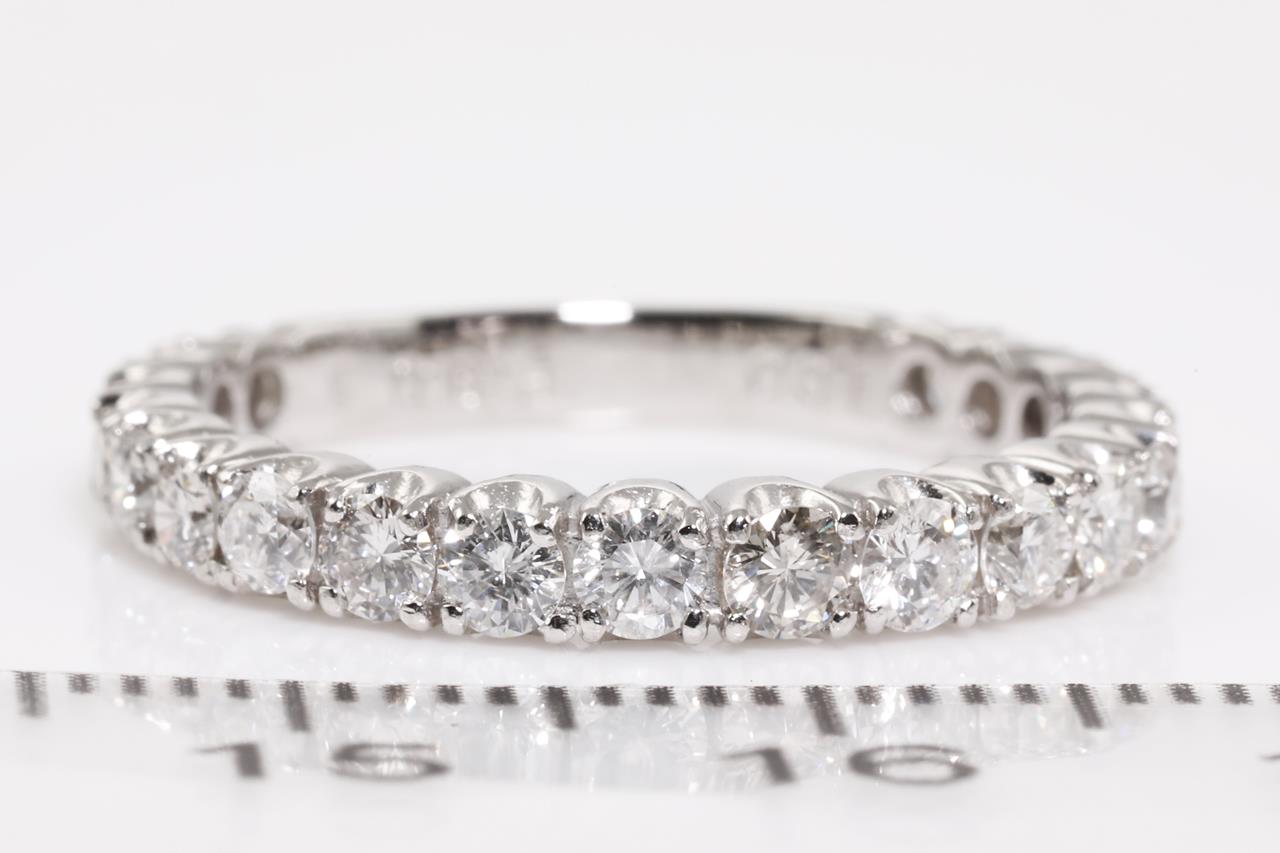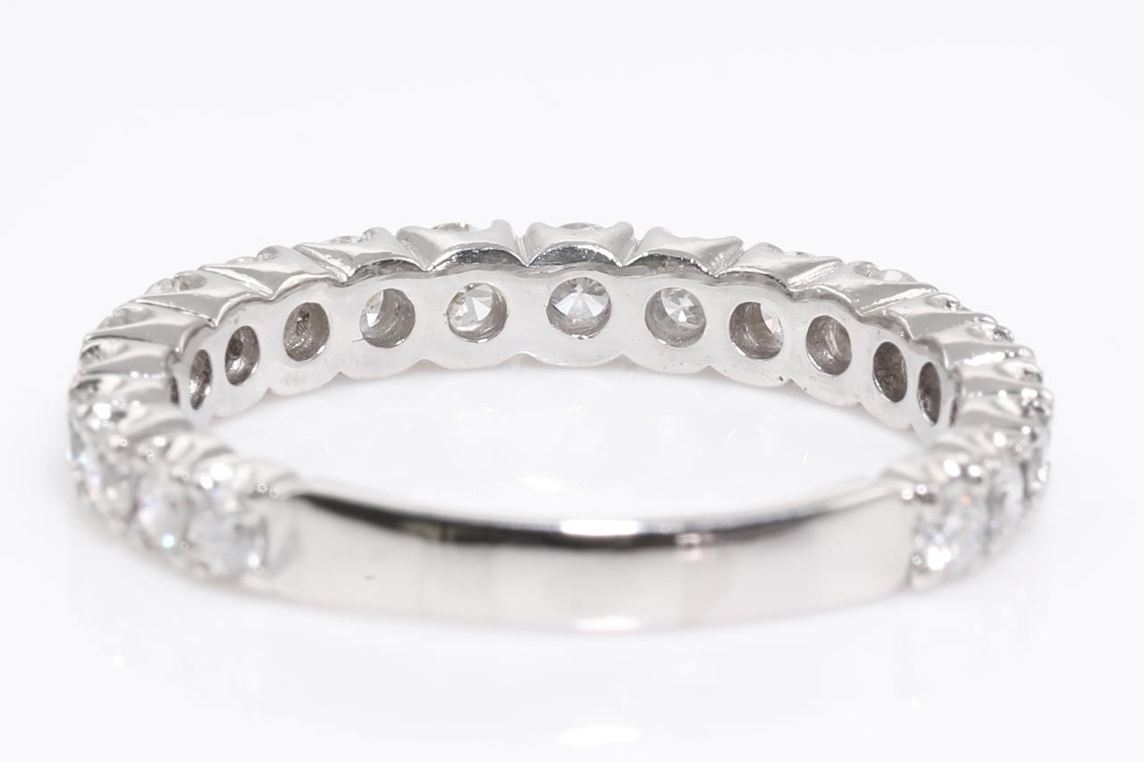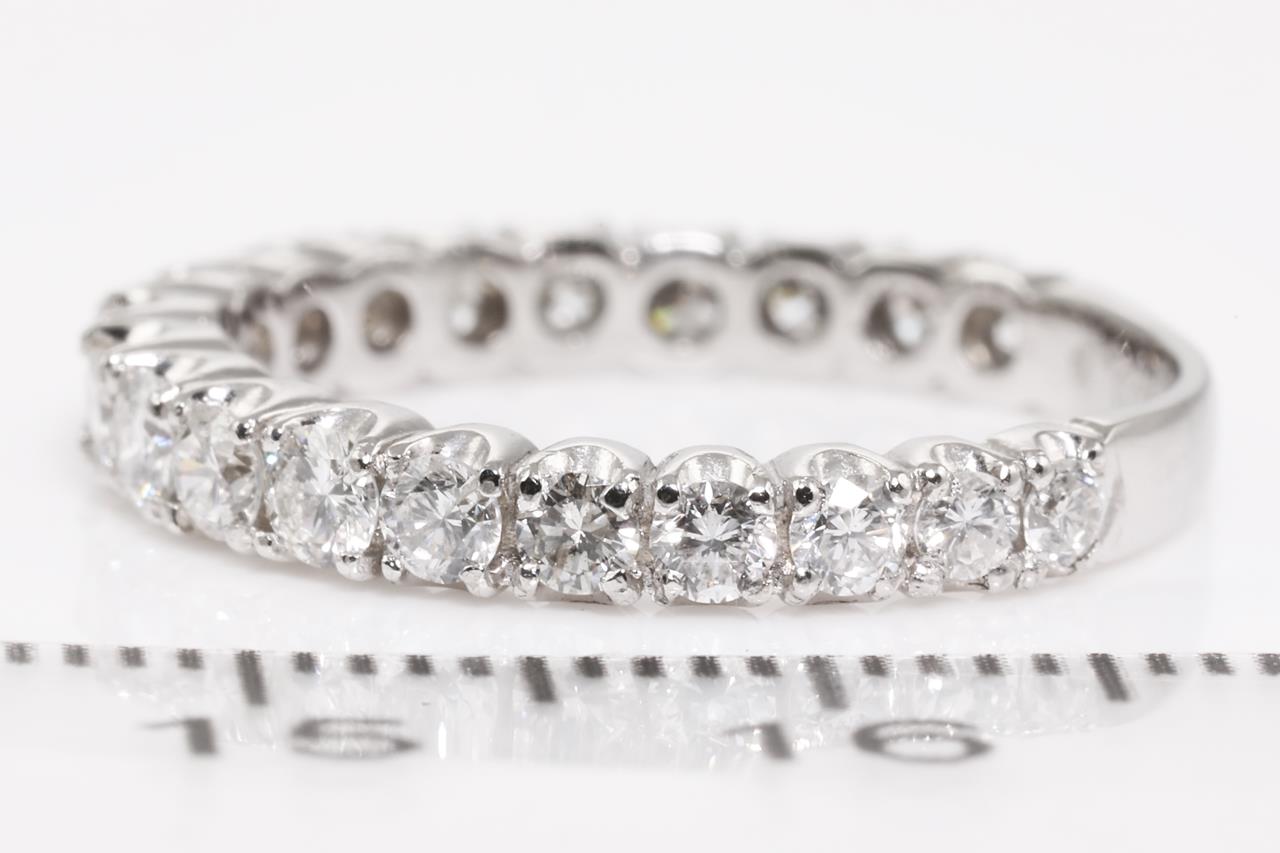 Diamond eternity ring with round Diamonds totalling 1.00cts (Estimated grading: G-H SI). Platinum. Ring size N - ring resizing is not recommended. Weight: 3.9g (Pre-owned)