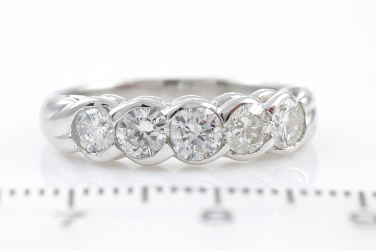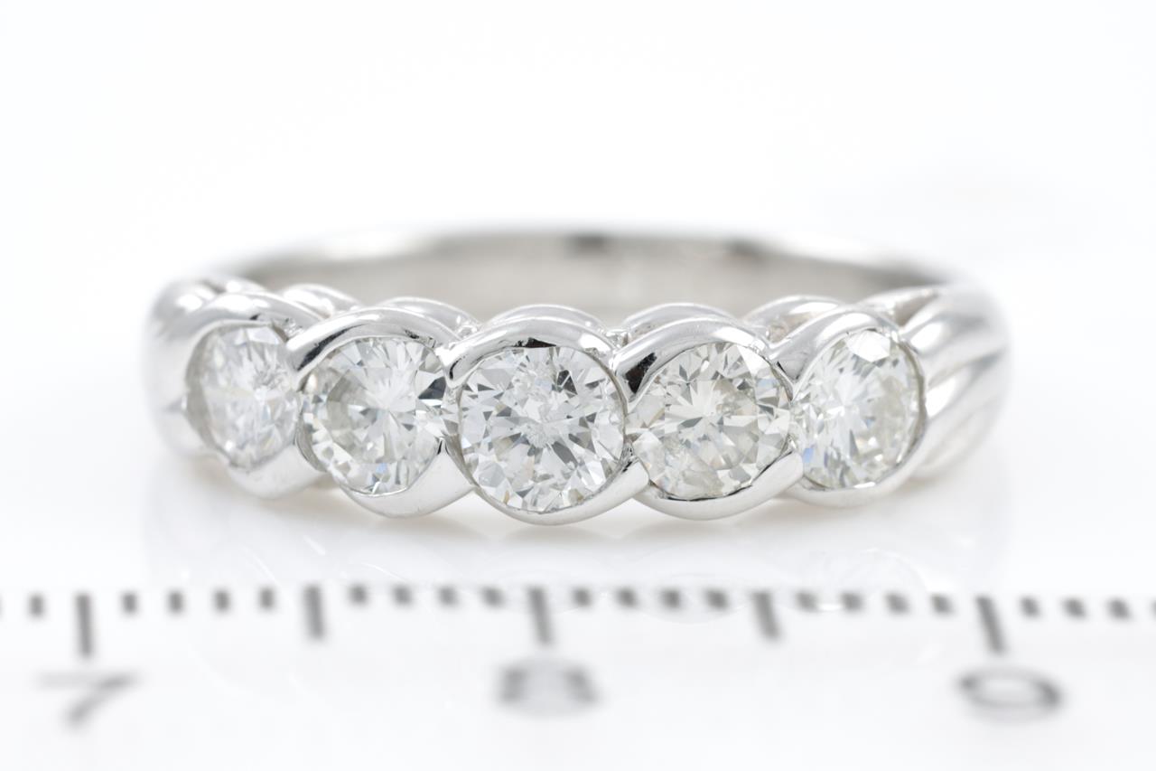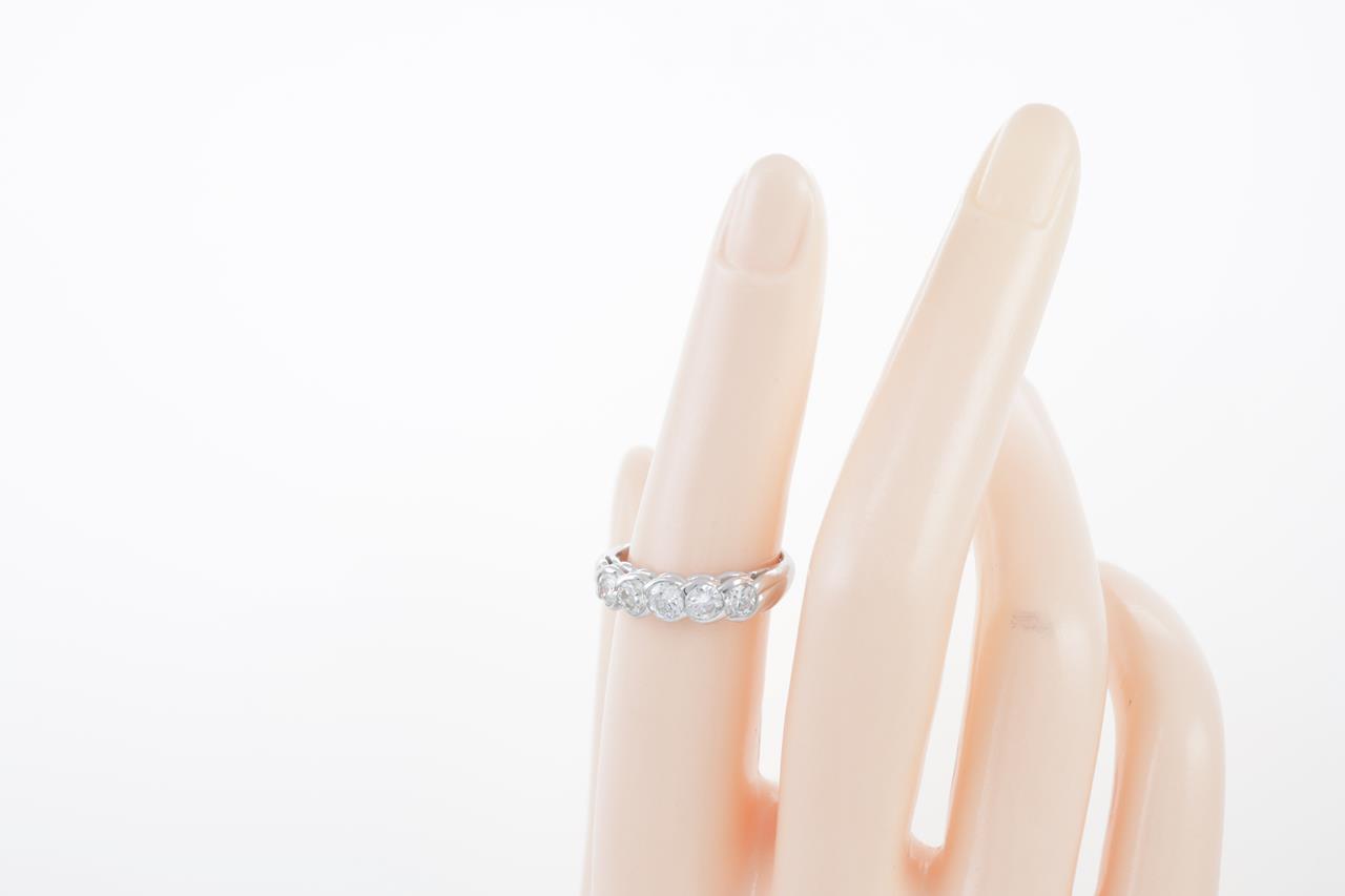 Diamond eternity ring with 5 round brilliant cut Diamonds totalling 1.00cts (Estimated grading: H SI2-P1). Platinum. Ring size: M. Weight: 4.9g (Pre-owned)