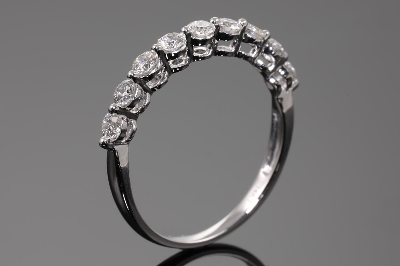 Diamond eternity ring with round Diamonds totalling 1.00cts (Estimated grading H P2-P3). Platinum. Ring size: Q - can be resized up by a maximum of 3 sizes, down with ring clip. Weight: 3.0g (Pre-owned)