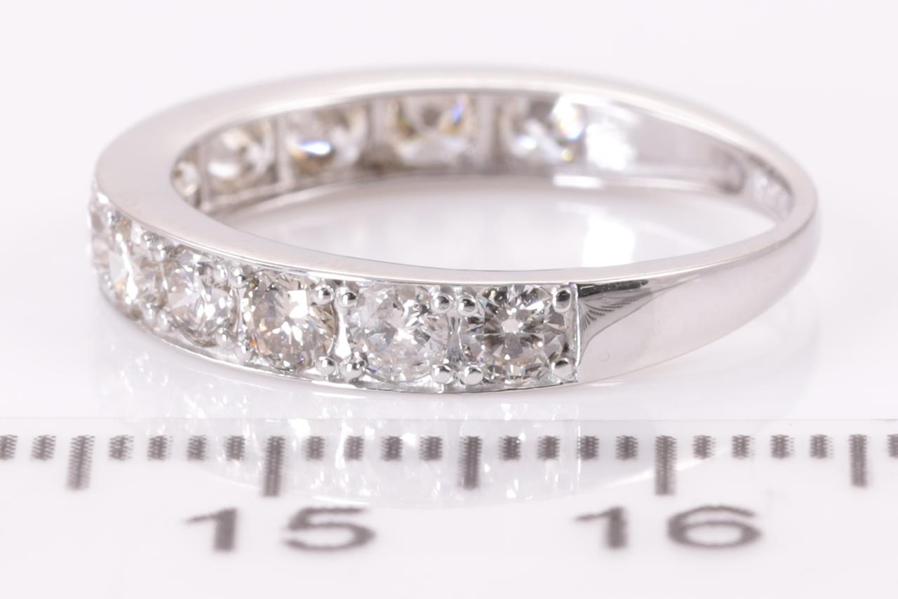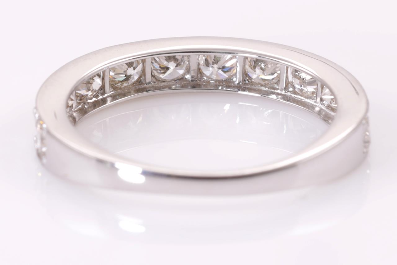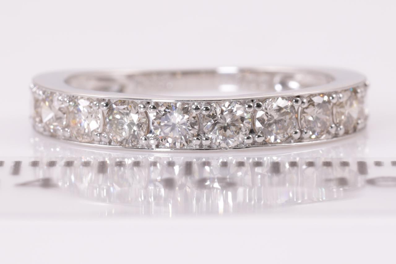 Diamond eternity ring with round brilliant cut Diamonds totalling 1.00cts (Estimated grading J-K SI-P2). Platinum. Ring size L. Weight: 2.4g (Pre-owned)