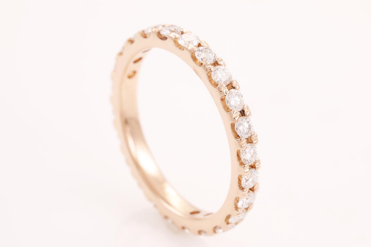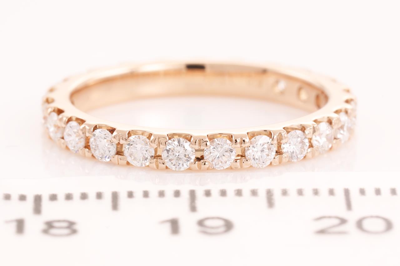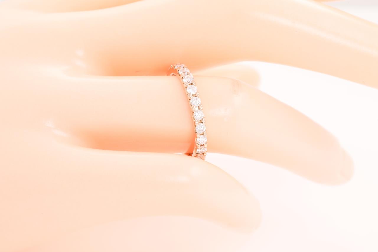 Diamond full hoop eternity ring with 24 round Diamonds totalling 1.00cts (Estimated grading: H SI). 18ct rose gold. Ring size N - ring resizing is not recommended. Weight: 3.0g (Pre-owned)