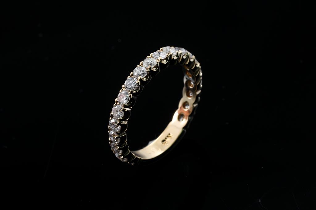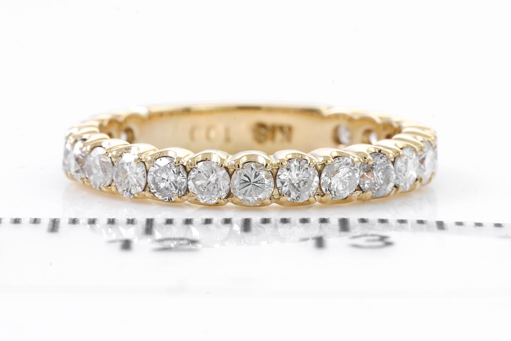 Diamond 3/4 hoop eternity ring with round Diamonds totalling 1.00cts (Estimated grading: G-H P1-2). 18ct yellow gold. Rings size K. Weigth: 3g. (Pre-owned)