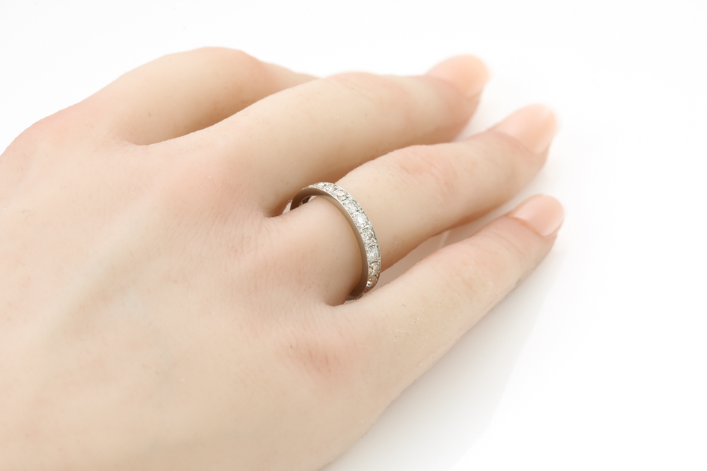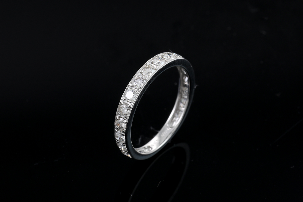 Diamond eternity ring with 19 round Diamonds totalling 1.00ct (Estimated grading: H-I SI). Platinum. Ring size L 1/2. Weight: 2.2g. (Pre-owned)