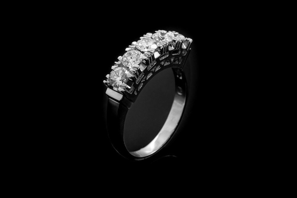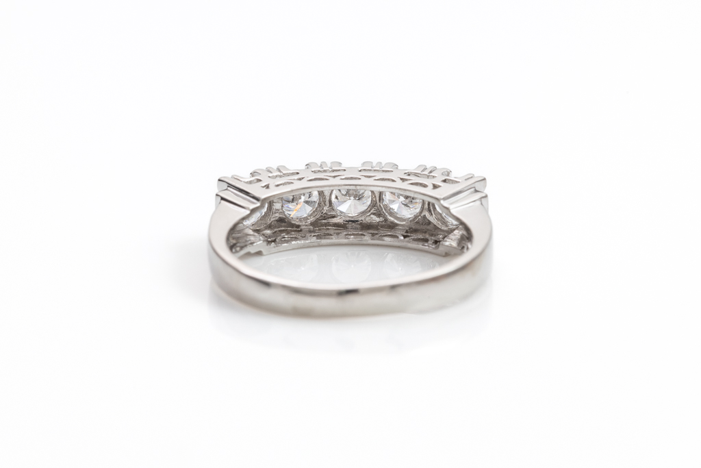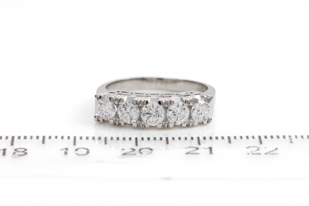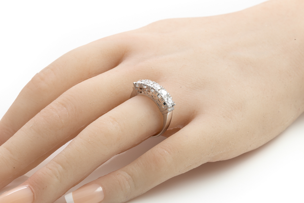 Diamond Eternity ring with 5 round Diamonds totalling 1.00cts (Estimated grading: F-G SI). Platinum. Ring size N 3/4. Weight: 5.8g. (Pre-owned)
