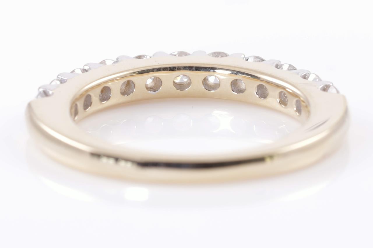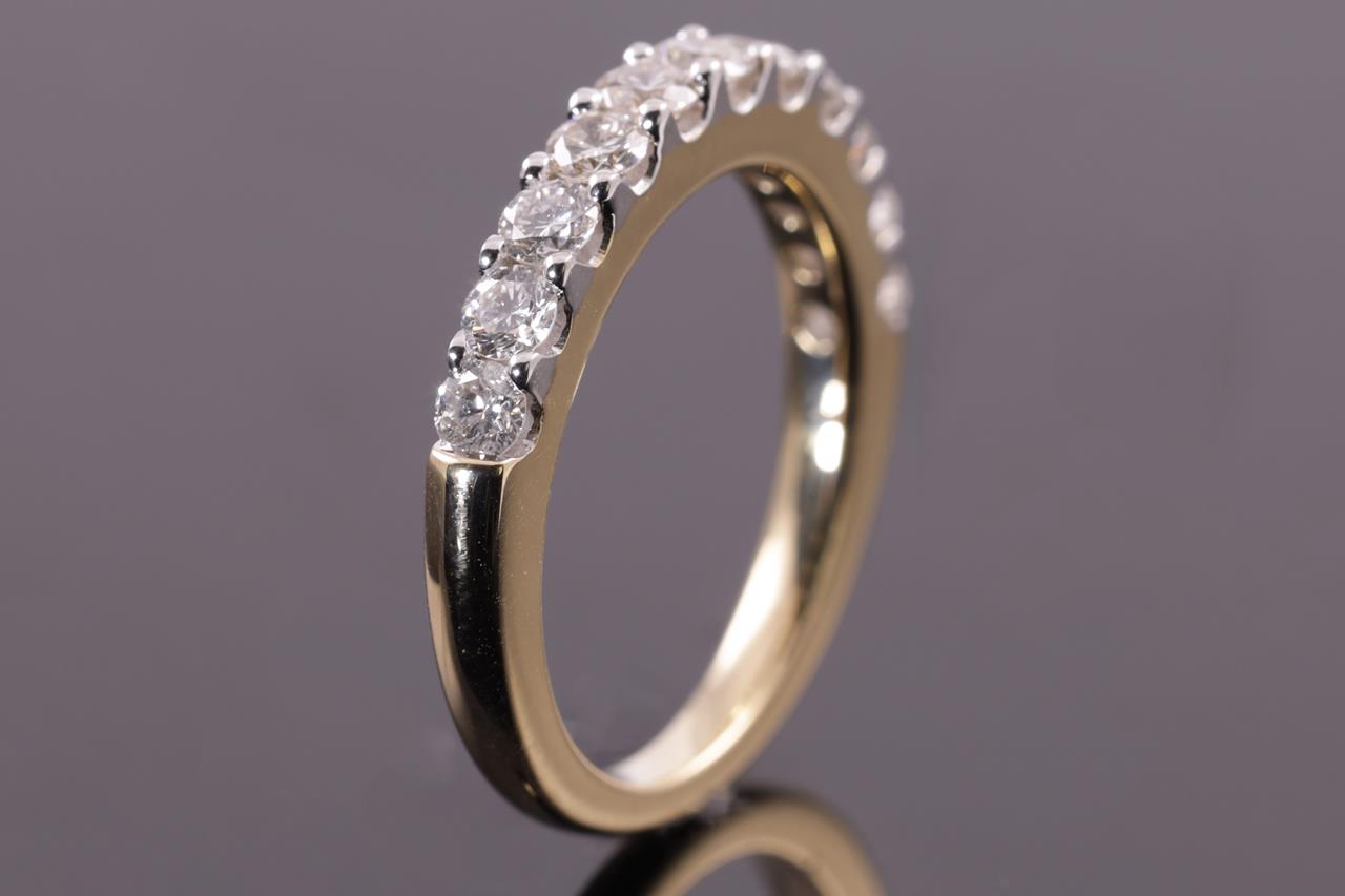 Diamond half hoop eternity ring with 11 round Diamonds totalling 1.00cts (Estimated grading: H-I SI). 14ct yellow and white gold. Size: N - can be resized up by a maximum of 3 sizes, down with ring clip. Weight: 4.4g. (New)