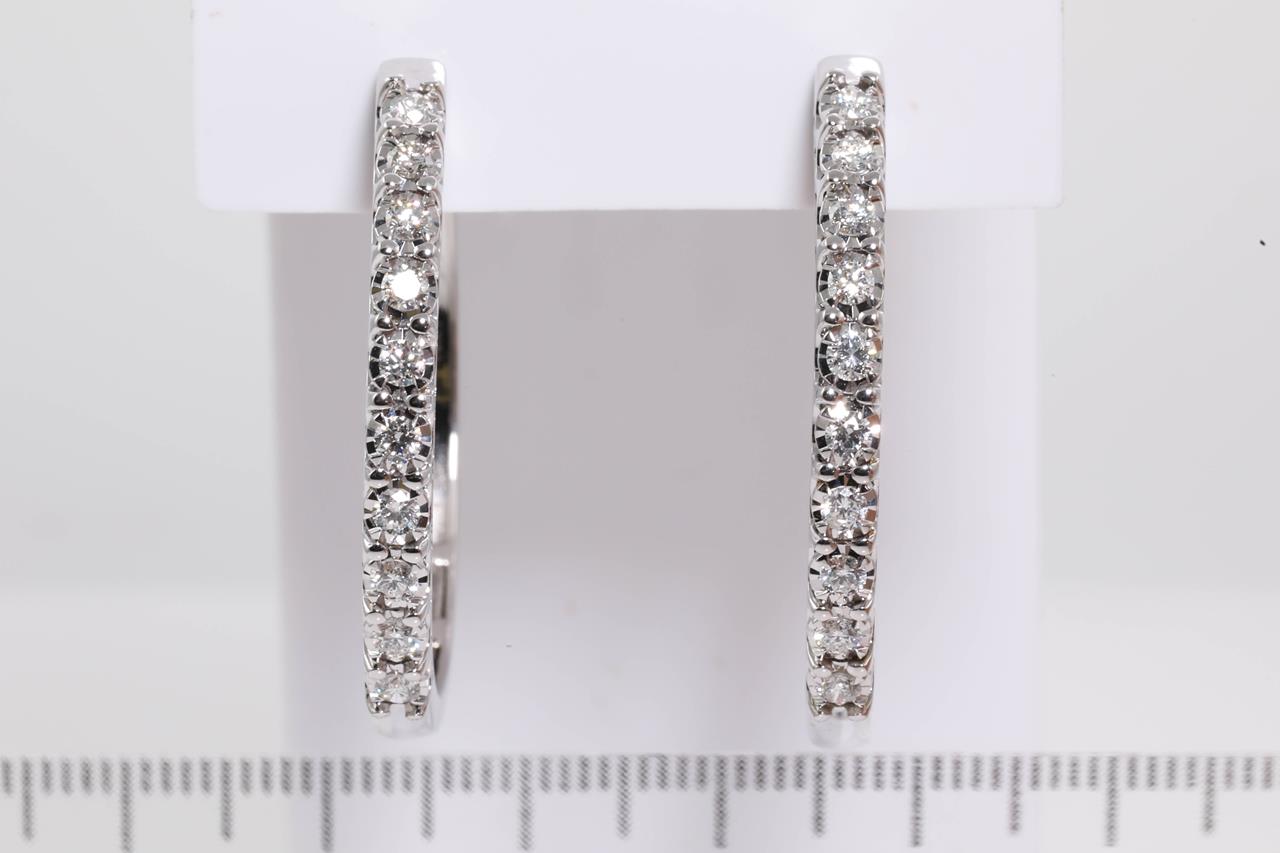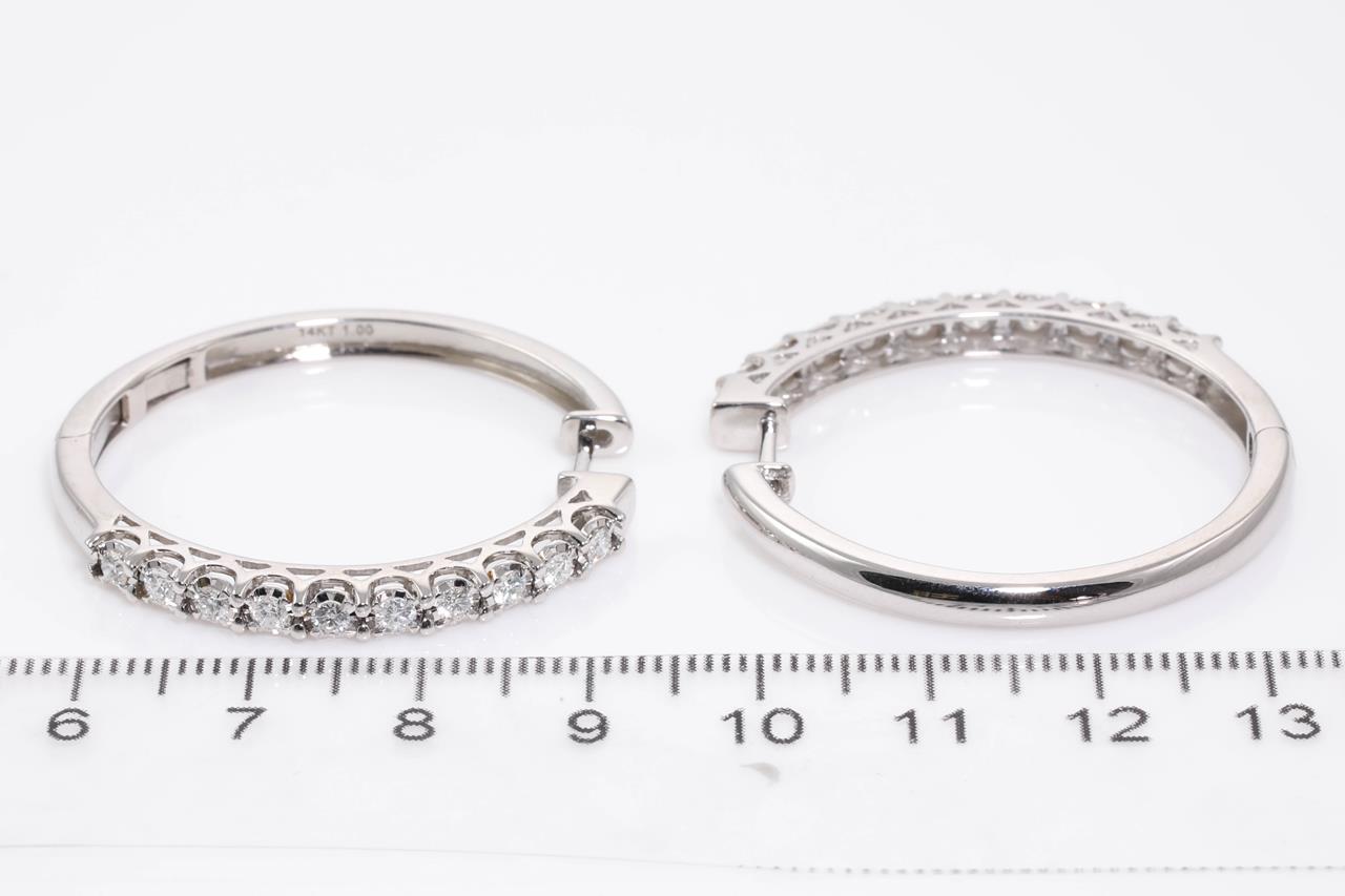 Diamond hoop earrings with round Diamonds totalling 1.00cts (Estimated grading: G-H SI-P1). 14ct white gold. Weight: 11.2g (New)