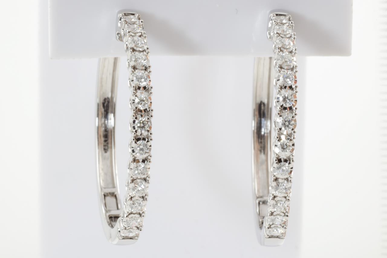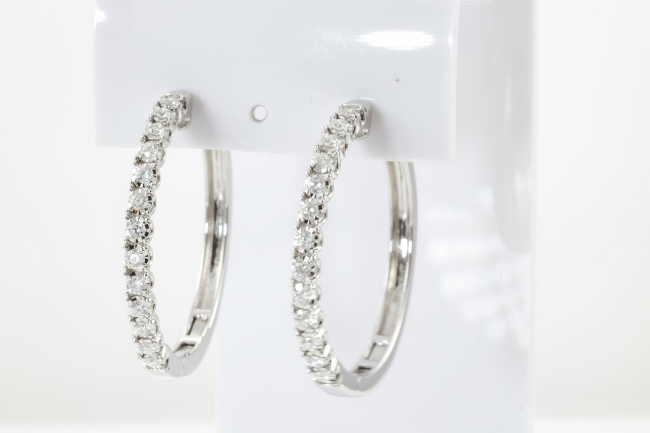 Diamond hoop earrings with round Diamonds totalling 1.00cts (Estimated grading: H SI-P1). 14ct White gold. Weight: 11.9g (New)