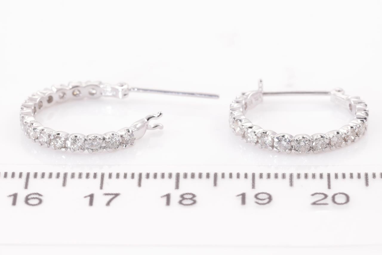 Diamond hoop earrings with Diamonds totalling 1.00cts (Estimated grading: I P1). Platinum. Weight: 4.2g (Pre-owned)