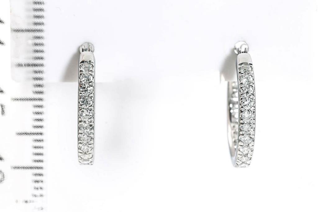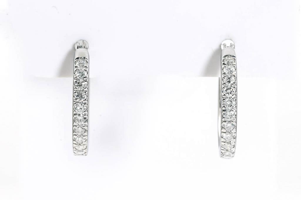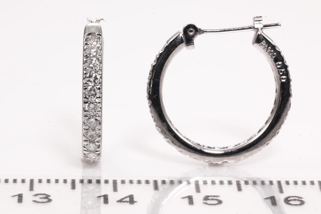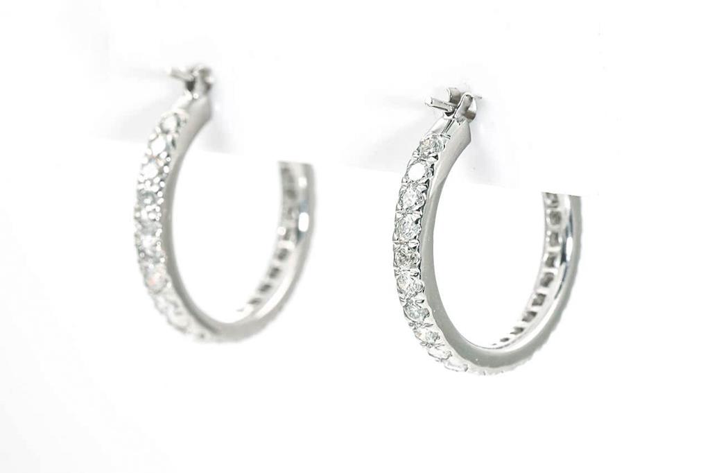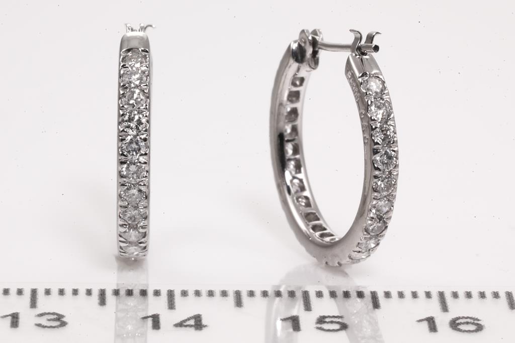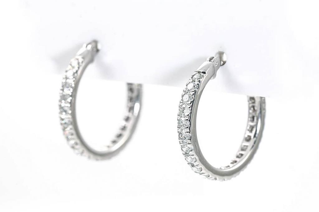 Diamond hoop earrings with round Diamonds totalling 1.00cts (Estimated grading: H-I SI-P1). Platinum. Weight: 4.9g. (Pre-owned)