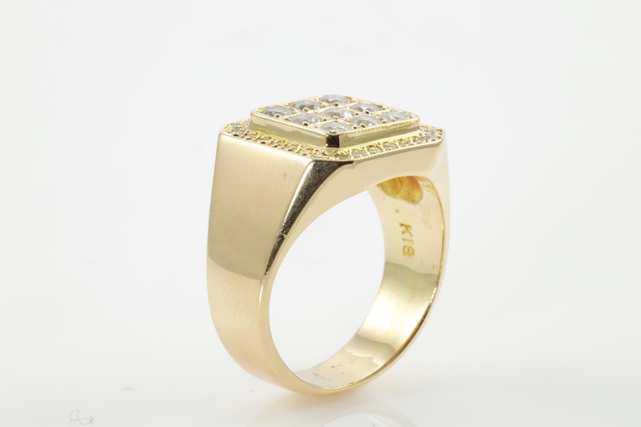 Mens pinky ring with round Diamonds totalling 1.00cts (Estimated grading: H SI-P1). 18ct yellow gold. Ring size N. Weight: 12.6g (Pre-owned)