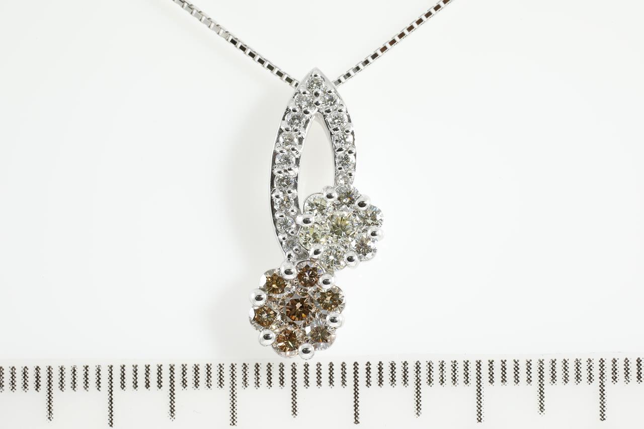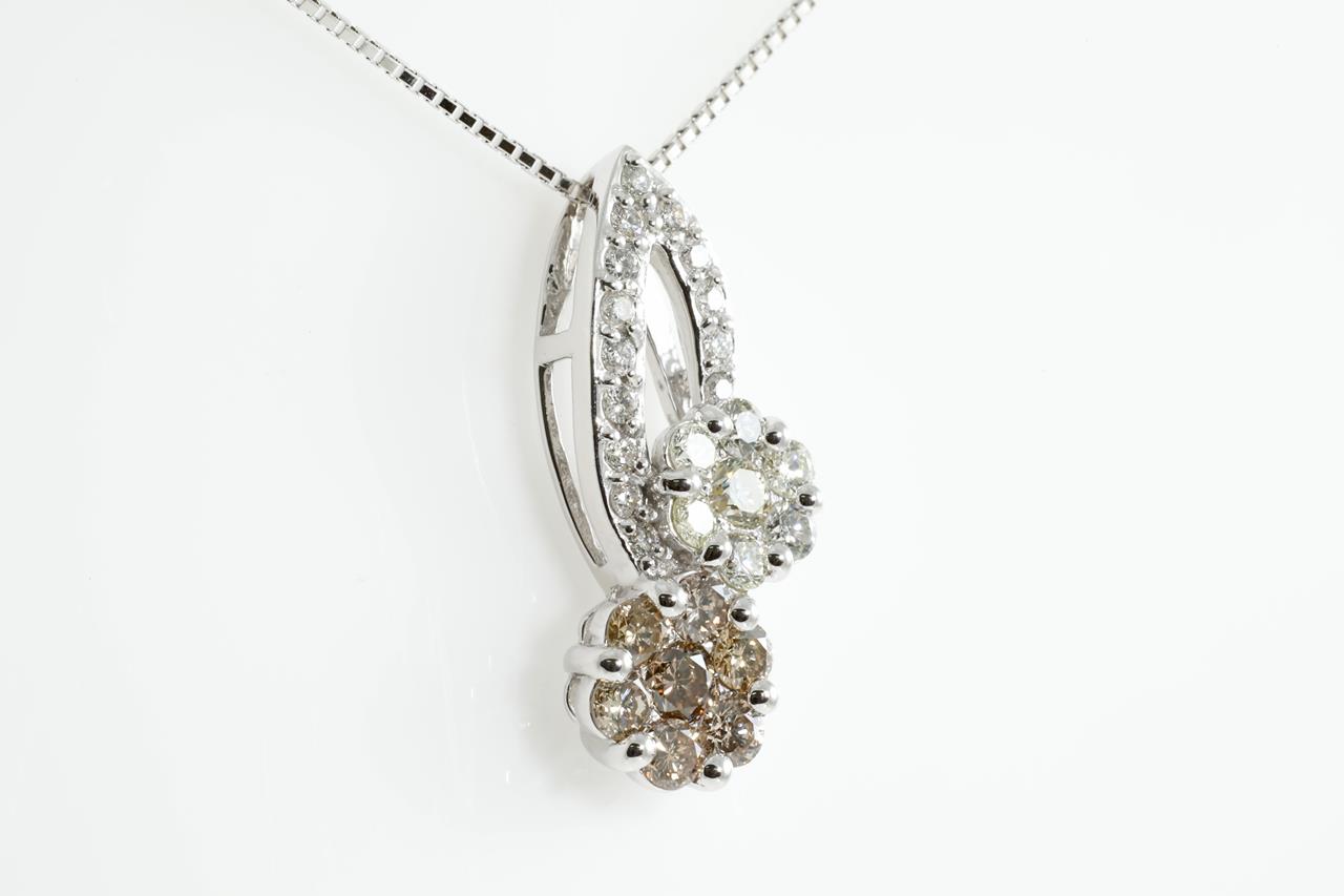 Diamond pendant with round champagne and white Diamonds totalling 1.00cts (Estimated grading: I-K VS-SI) 18ct white gold with 45cm 18ct white gold adjustable chain. Weight: 5.1g (Pre-owned)
