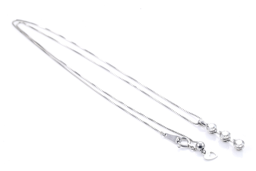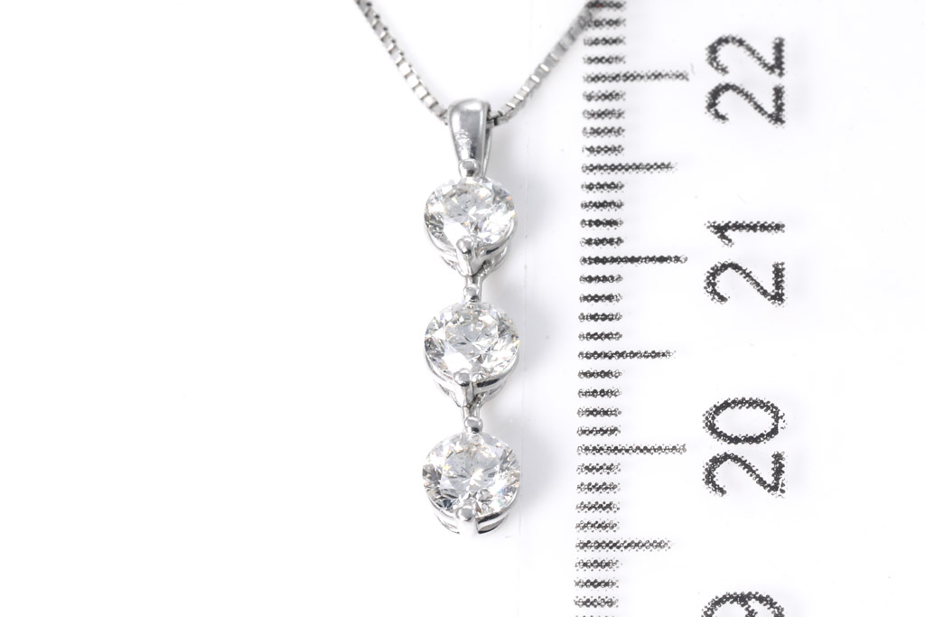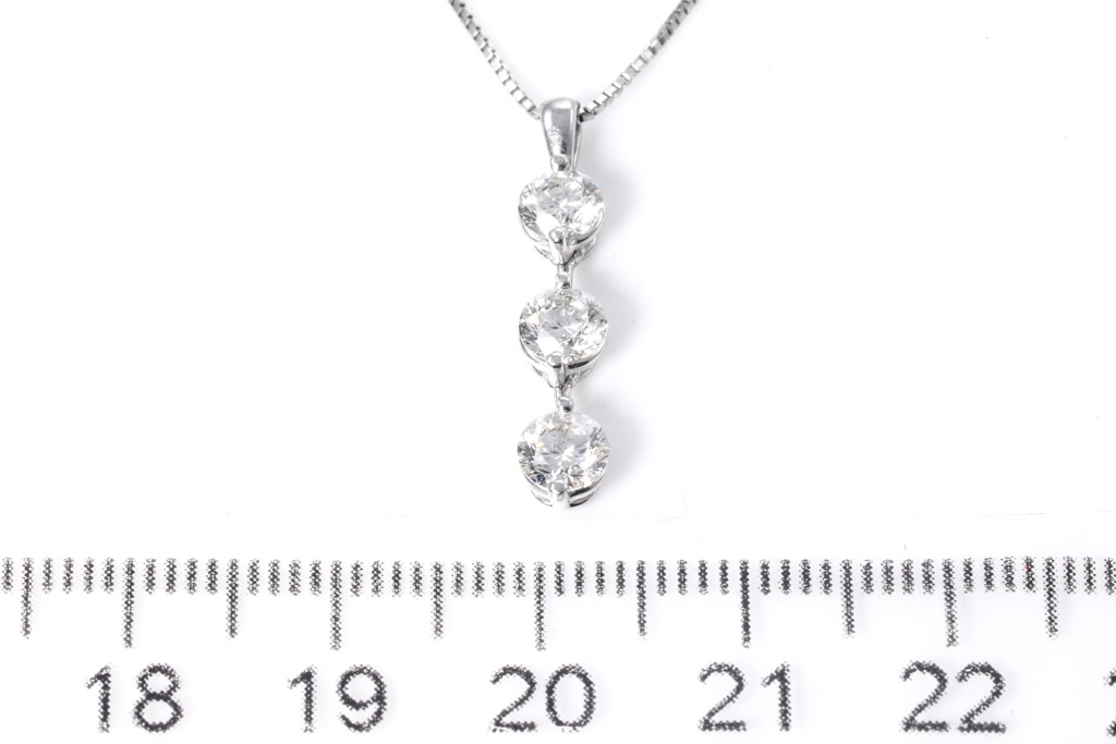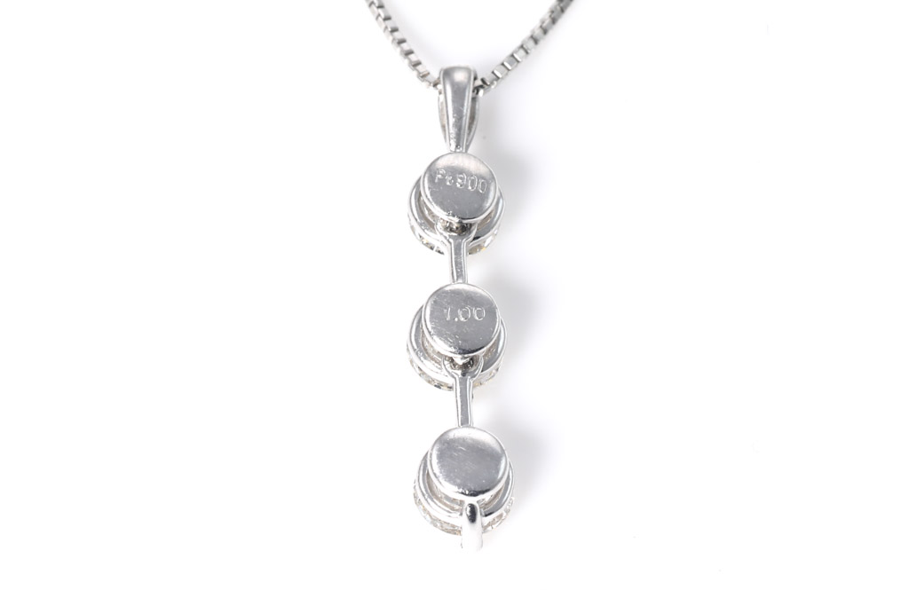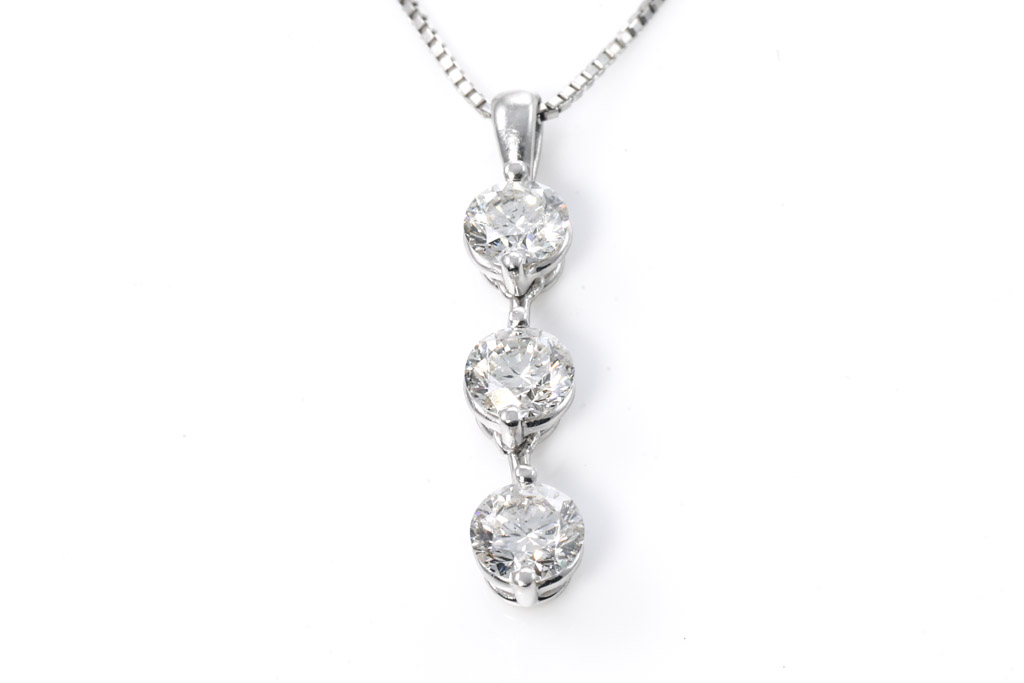 Diamond pendant with 3 round Diamonds totalling 1.00cts (Estimated grading: J SI-P1). Platinum with 44cm adjustable platinum chain. Weight: 4.2g. (Pre-owned)