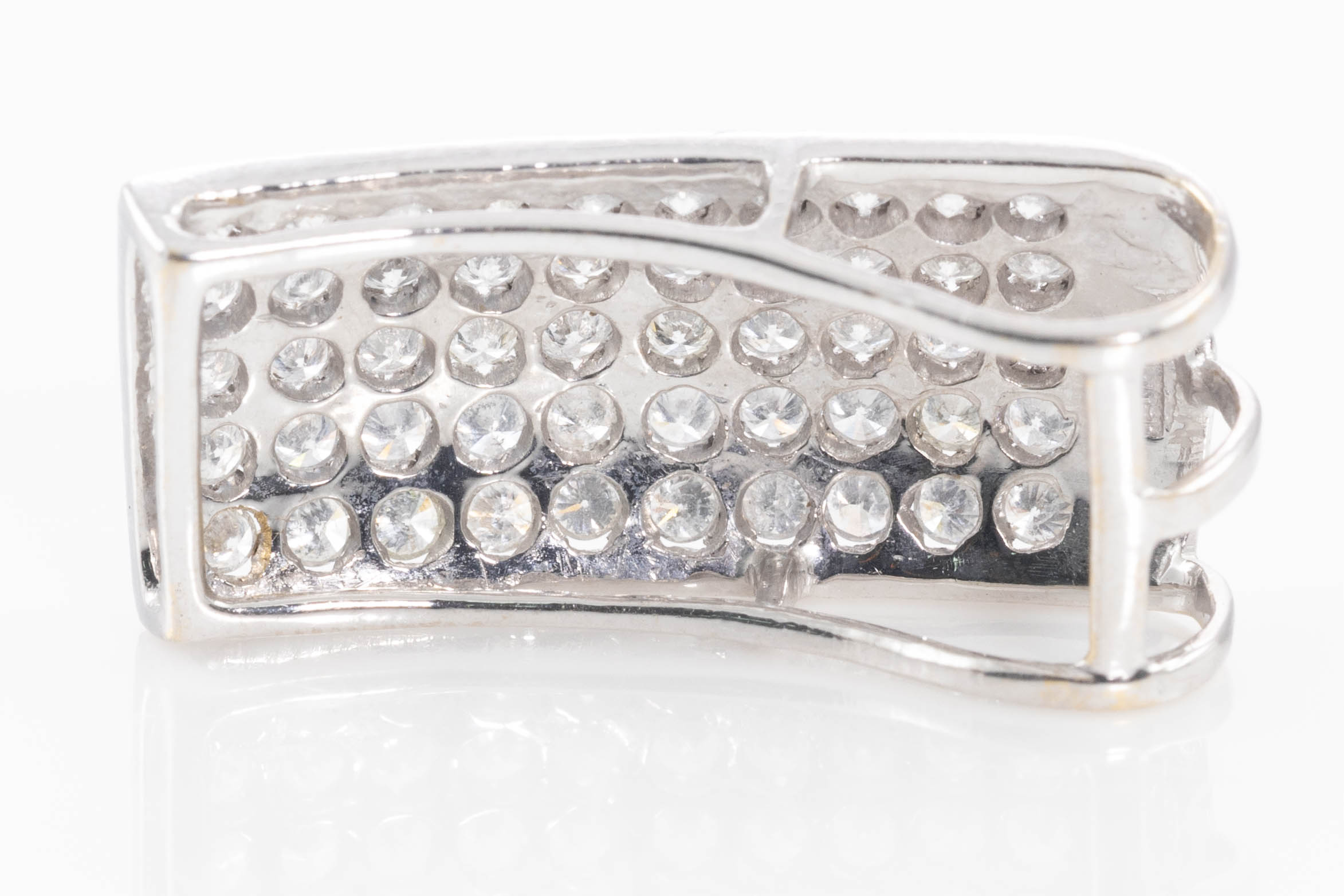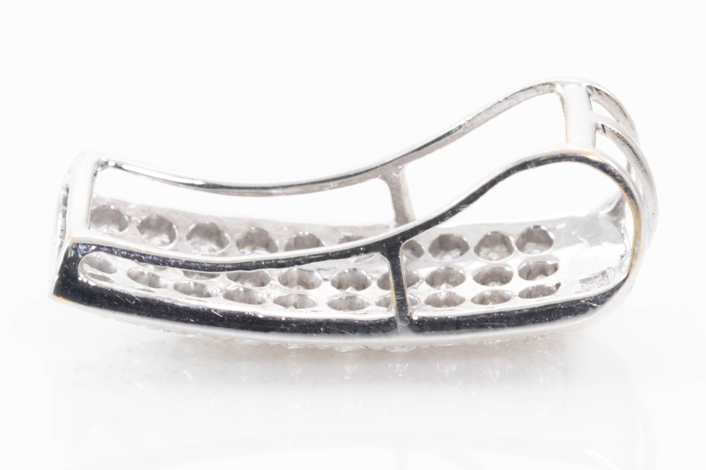 Diamond pendant with round Diamonds totalling approximately 1.00cts (Estimated grading: H P1-2). 12ct white gold. No chain provided. Weight: 4.2g (Pre-owned)