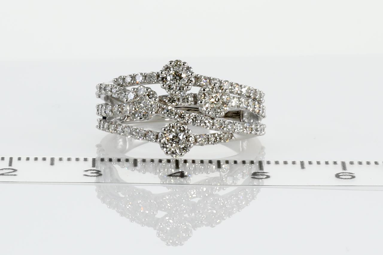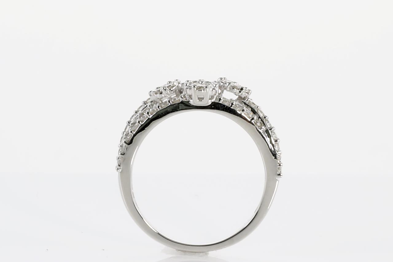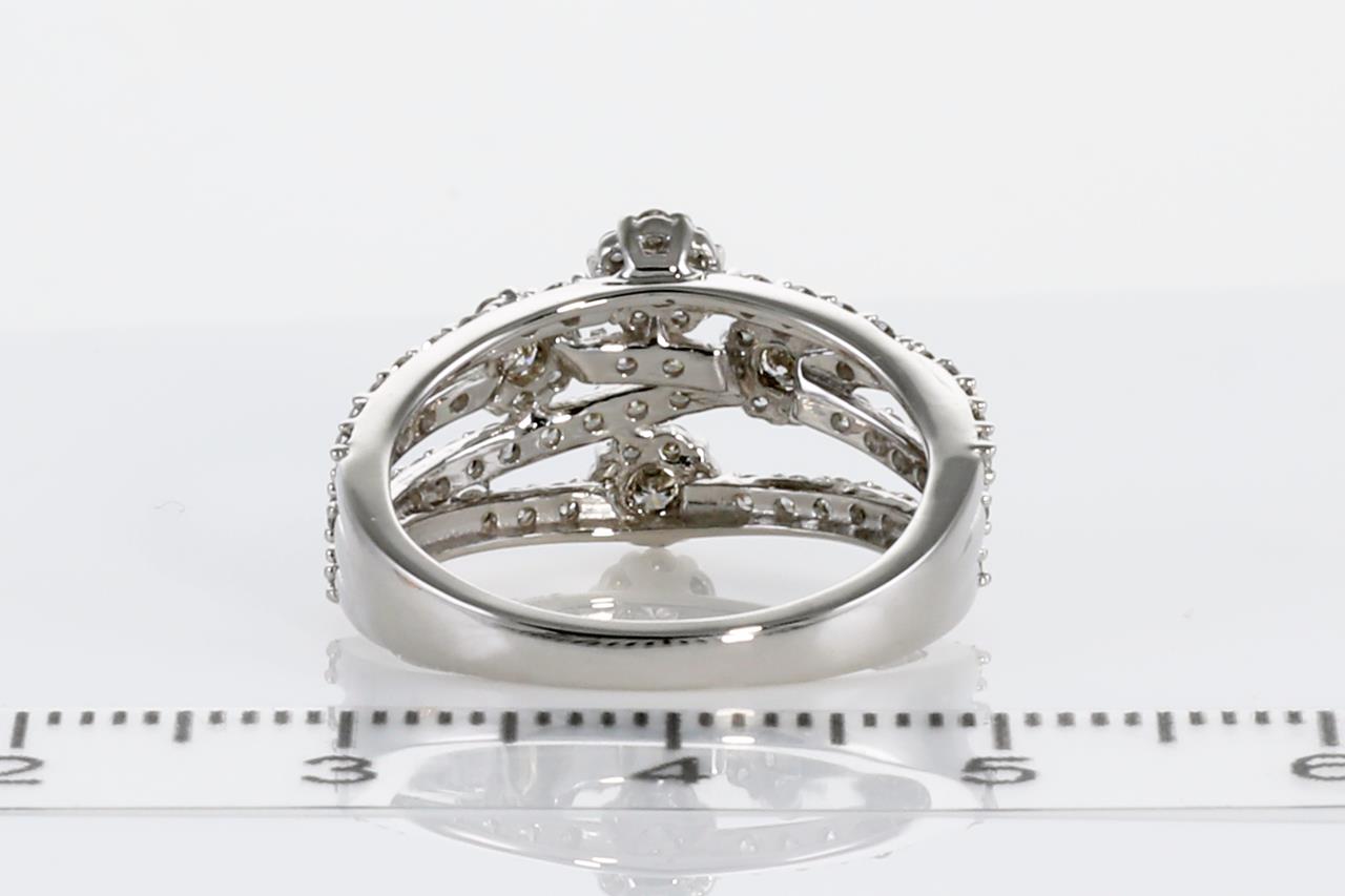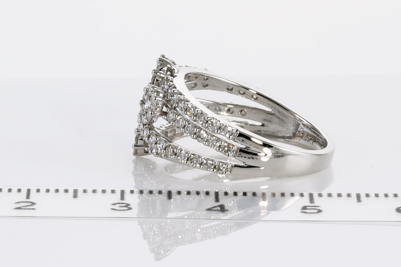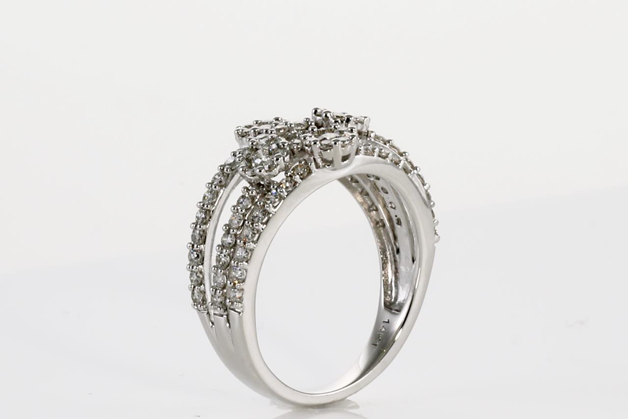 Diamond dress ring with round Diamonds totalling 1.00cts (Estimated grading: H SI). 14ct white gold. Ring size M - Ring resizing is not recommended. Weight: 3.8g (New)