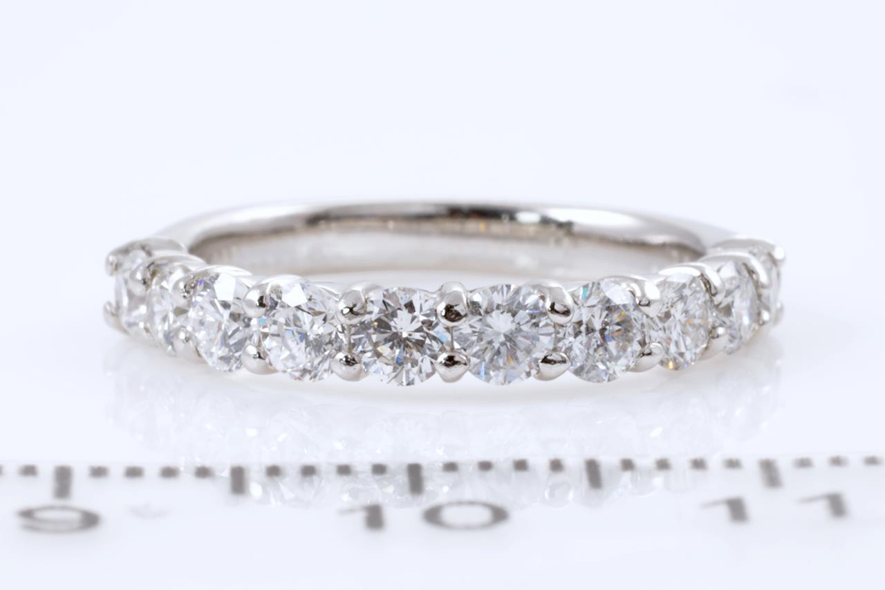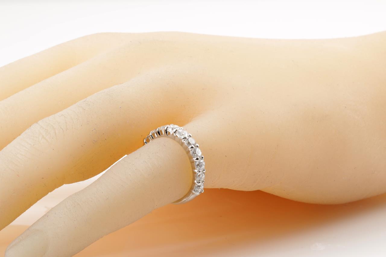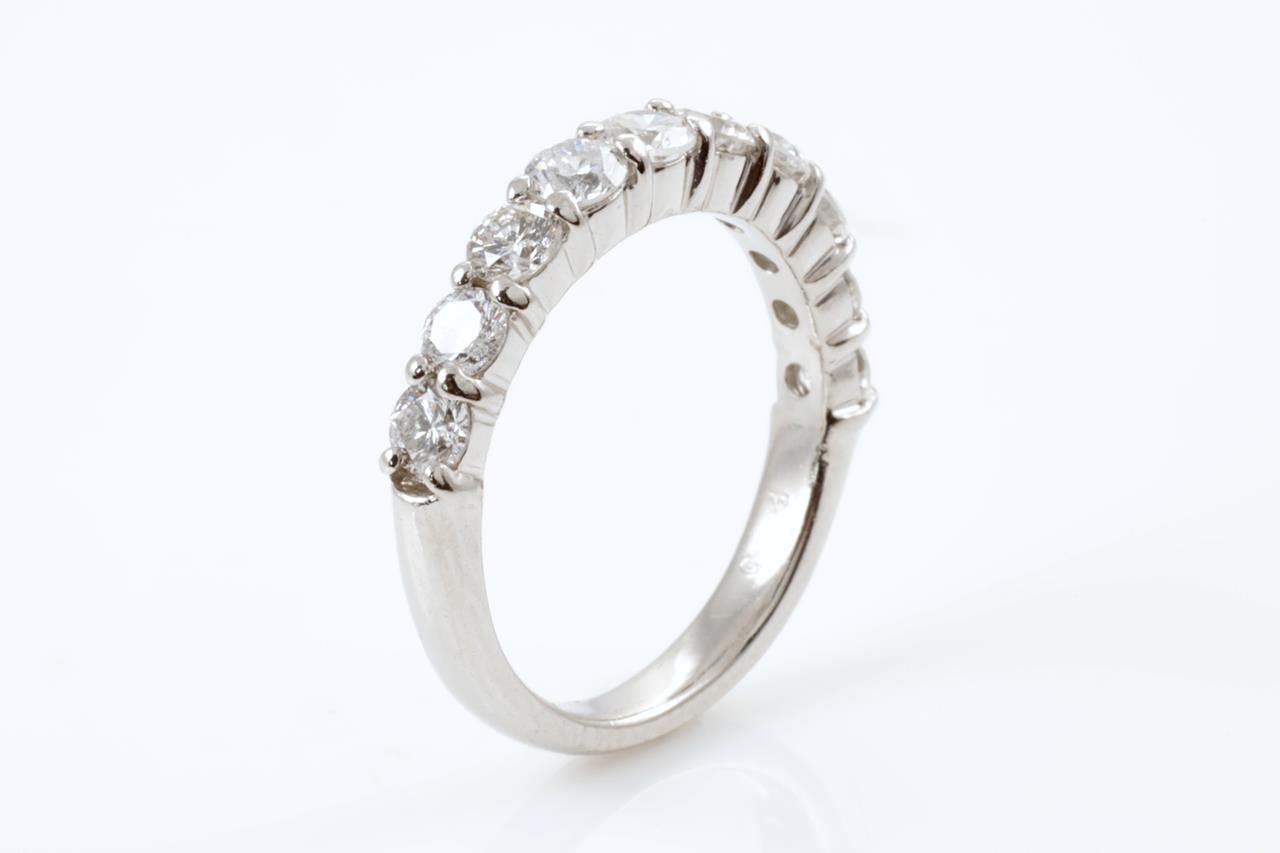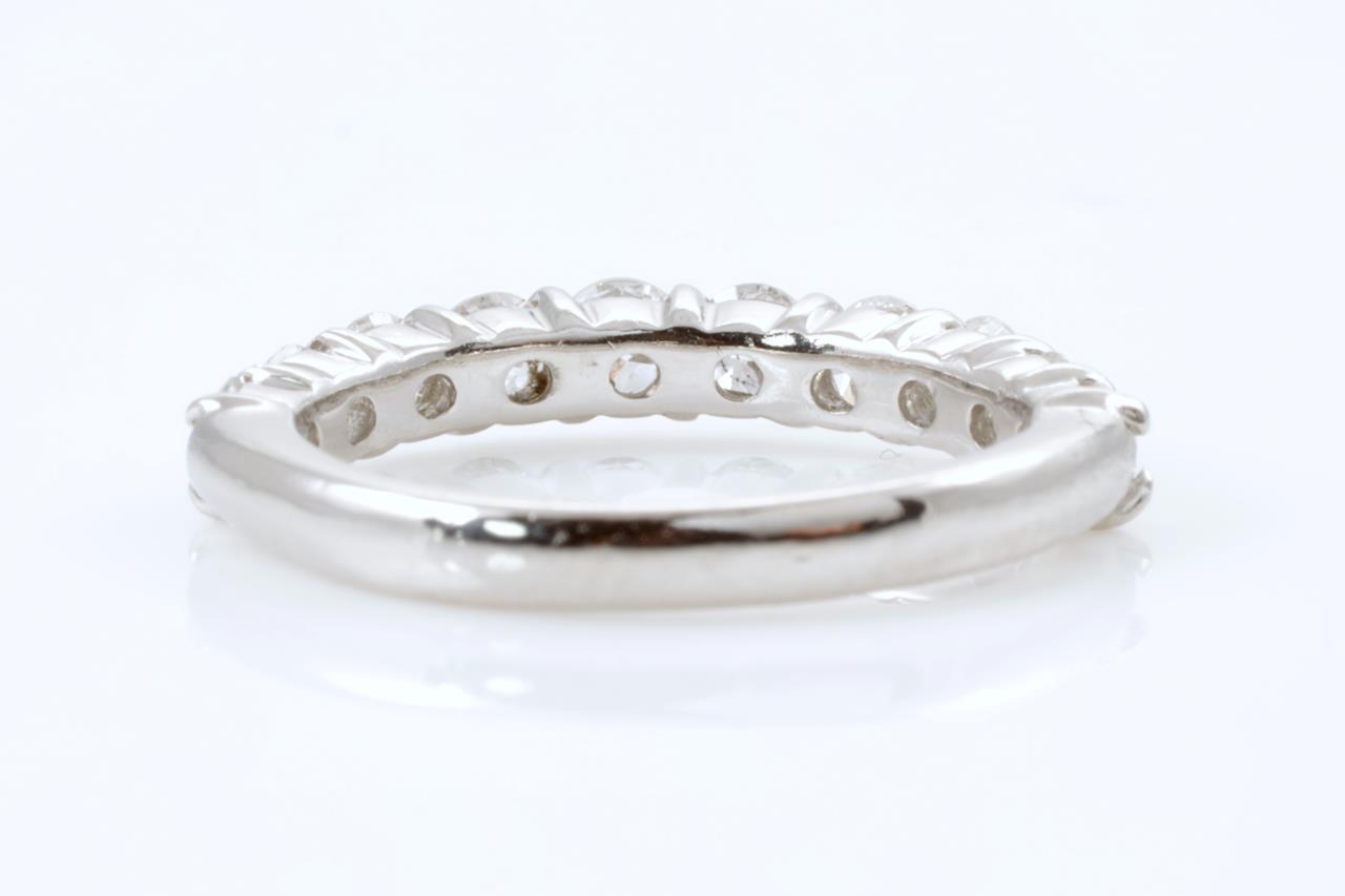 Diamond half eternity ring with round Diamonds totalling 1.00cts (Estimated grading: G-H SI-P1). Platinum. Ring size H - cannot be resized up, down with ring clip. Weight: 3.3g (Pre-owned)