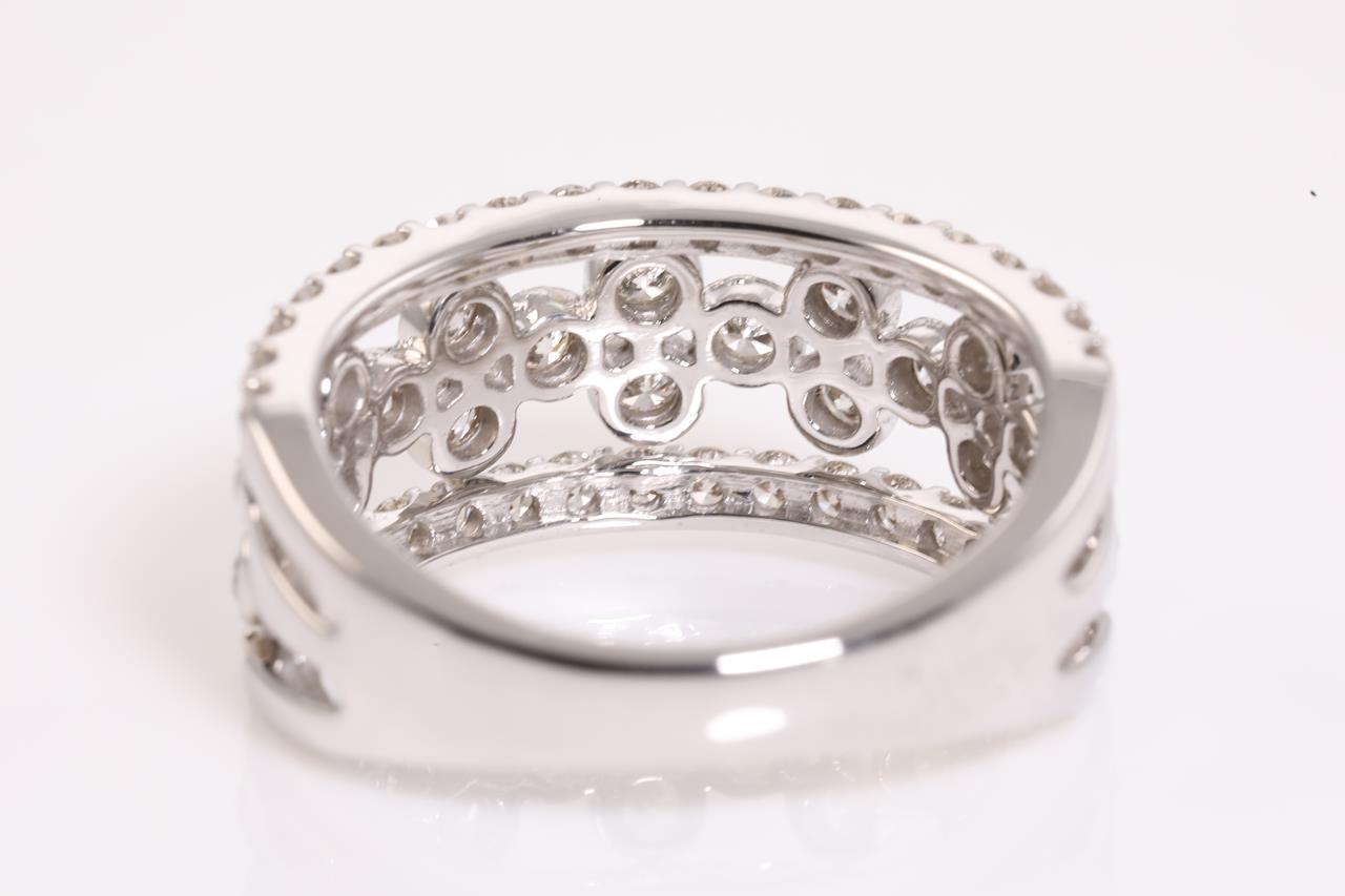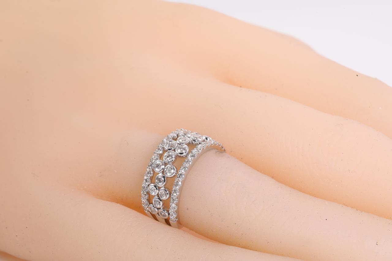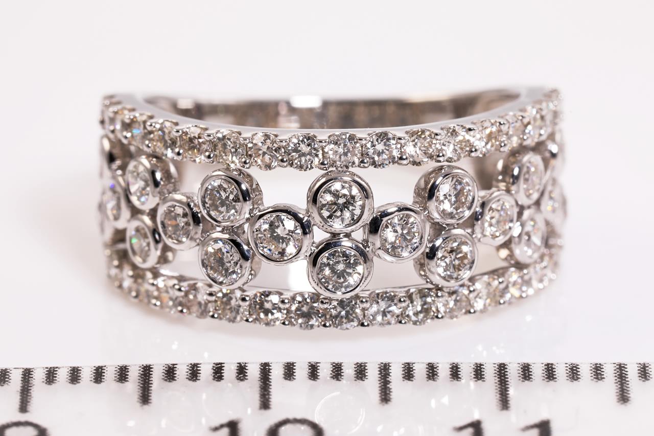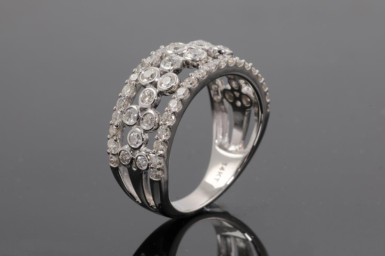 Diamond dress ring with round Diamonds totalling 1.00cts (Estimated grading: H SI). 14ct white gold. Ring size L - cannot be resized up, down with ring clip. Weight: 4.1g (New)