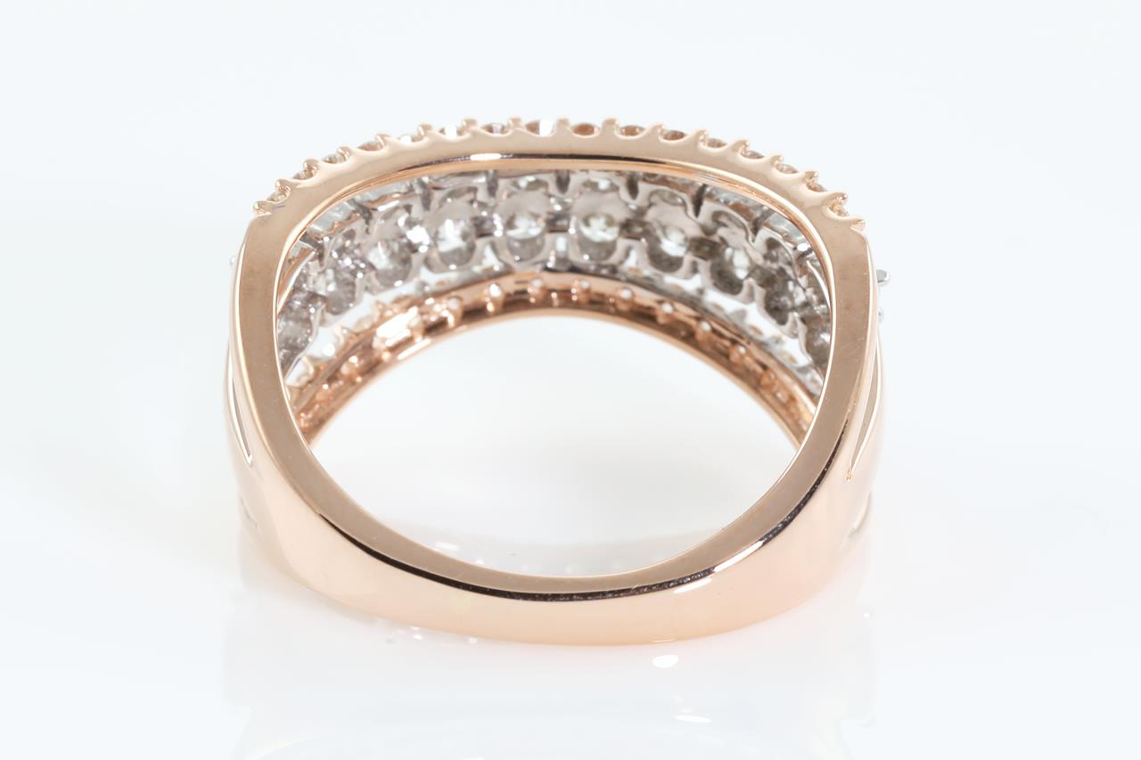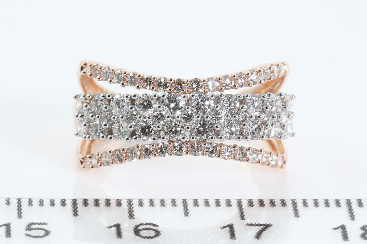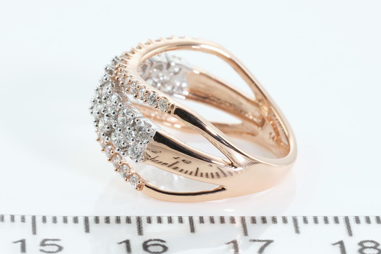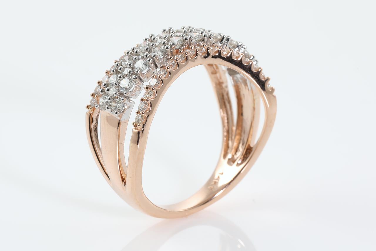 Diamond ring with 61 round Diamonds totalling 1.00cts (Estimated grading: H SI). 14ct rose gold. Ring size M. Weight: 4g (New).