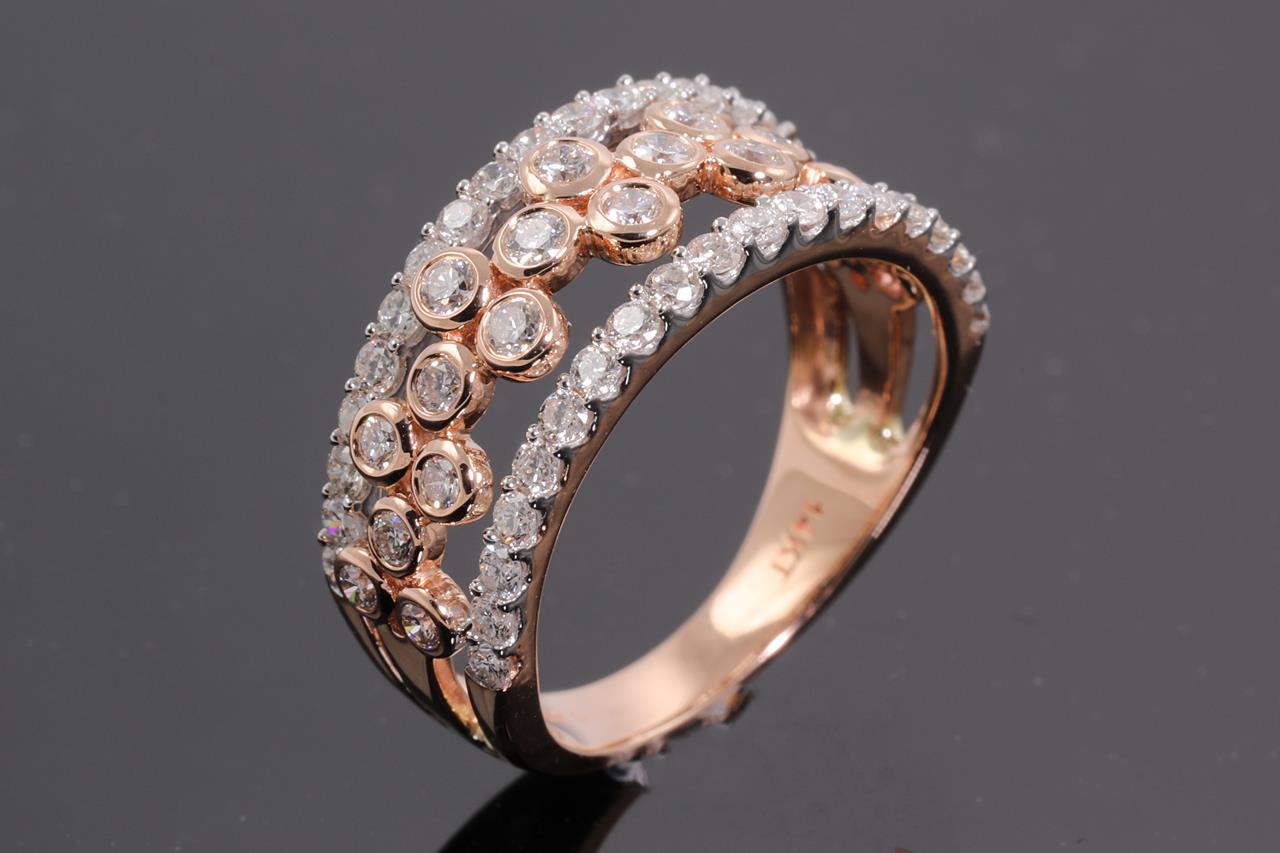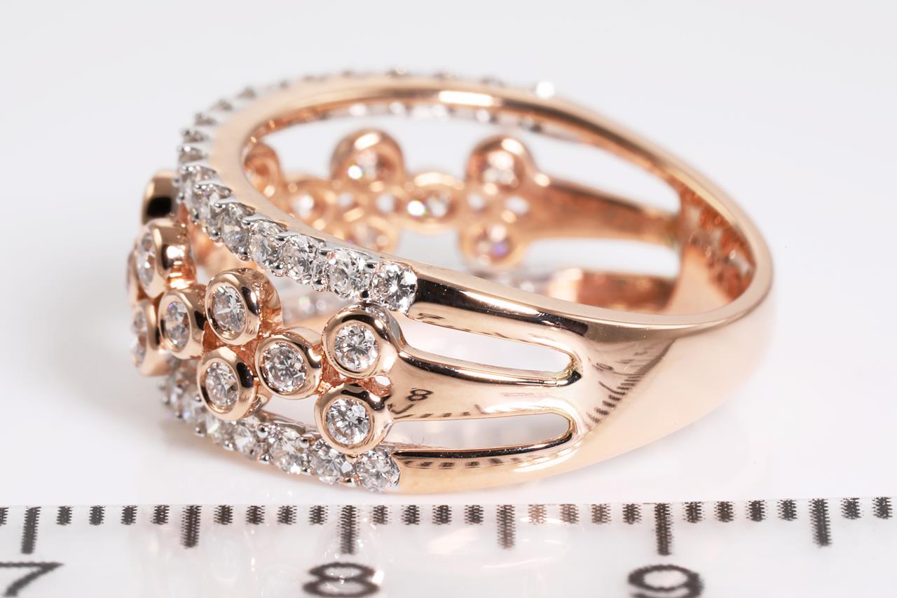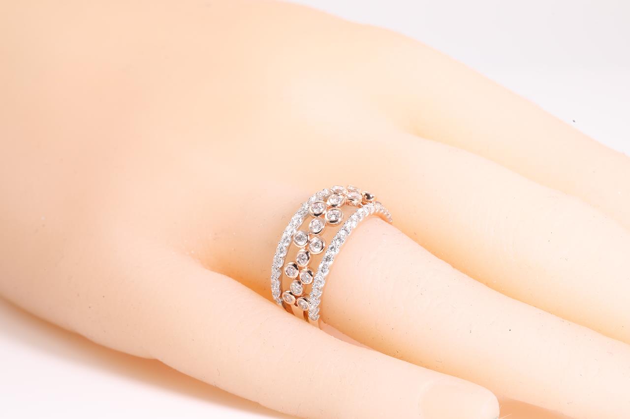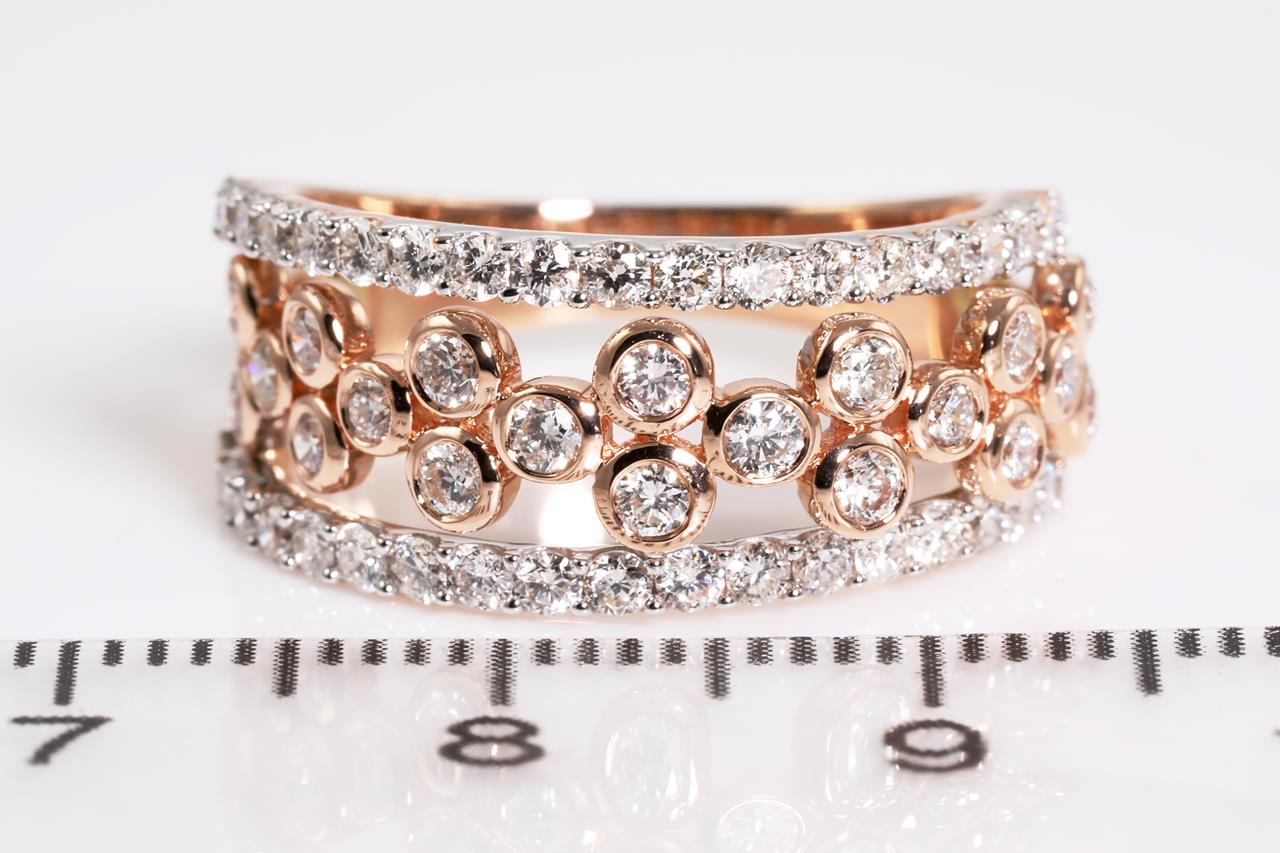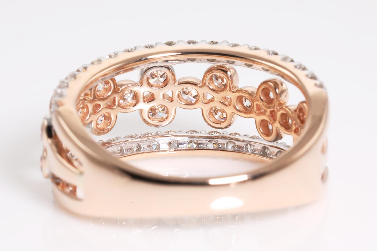 Diamond dress ring with round Diamonds totalling 1.00cts (Estimated grading: H SI). 14ct white and rose gold. Ring size L - cannot be resized up, down with ring clip. Weight: 4.0g (New)