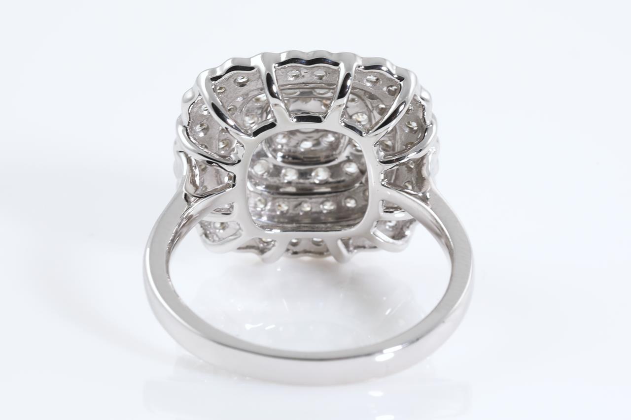 Diamond dress ring with 73 round Diamonds totalling 1.00cts (Estimated grading: H SI). 14ct white gold. Ring size L. Weight: 4.6g (New)